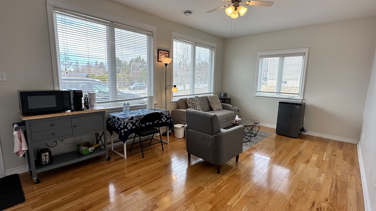 Aonad nua - athchóirithe in iarthar Saint John, fad siúil go Trá Bayshore agus Túr Martello le radharc ar Bhá Fundy. Miontuairiscí ó chríochfort farantóireachta Digby - Saint John, Páirc Dúlra Irving, agus lár an bhaile, le roinnt bialanna, tithe tábhairne, siopaí boutique agus Margadh stairiúil na Cathrach. Tá teallach leictreach, tábla bia beo agus beár bricfeasta, treadmill agus trealamh giomnáisiam éadrom, agus urlár seomra folctha téite le feiceáil ann. Tá an t - aonad céimeanna ar shiúl ó chosán siúil feadh Bay Shore.