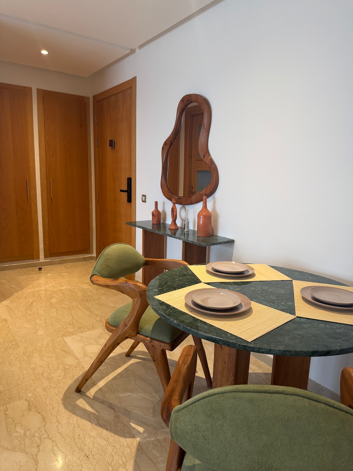 Set within a former artist’s studio, this exceptional loft has been redesigned into an elegant urban retreat in Upper Agdal. Defined by its impressive volume, soaring ceilings and abundant natural light, it blends contemporary design with authentic charm. With its private patio and warm, character-filled atmosphere, the apartment enjoys a prime location in one of Rabat’s most sought-after neighborhoods—just steps from cafés, restaurants, boutiques, tramway, and train station.
