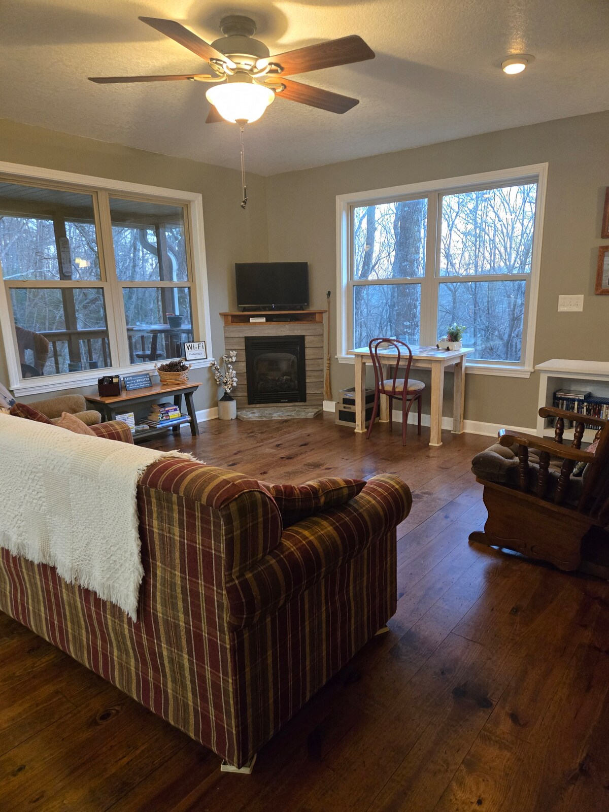 Iargúlta, ach gan ach 3 nóiméad ón mbaile. Téann bóthar pábháilte chuig an gcábán. Bain sult as fuaim shuaimhneach an chreagáin a chothaíonn 2 eas. 4 aoi amháin - gan eisceachtaí! Tá naíonáin/páistí ina n-aíonna. Níl peataí de chineál ar bith ann. Níl aon chaitheamh tobac/vápáil istigh. LL: Seomraí leapa, folcadh, níochán & póirse. UL: Cistin, áit suí, folcadán & póirse scagtha. Tá a fhios againn go dtitfidh tú i ngrá leis an gceantar. Vótáladh Clayton mar an pobal "Farm to Table" is fearr in GA agus tá go leor fíonlanna agus easanna ann!
