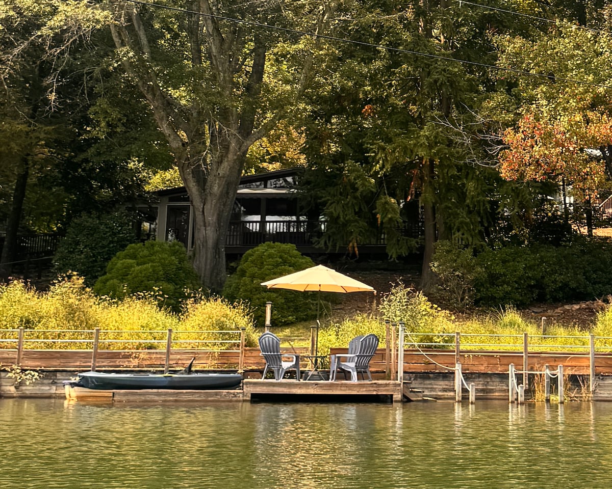 Teachín cois locha a bhfuil radharc uaidh, in aice le Clemson