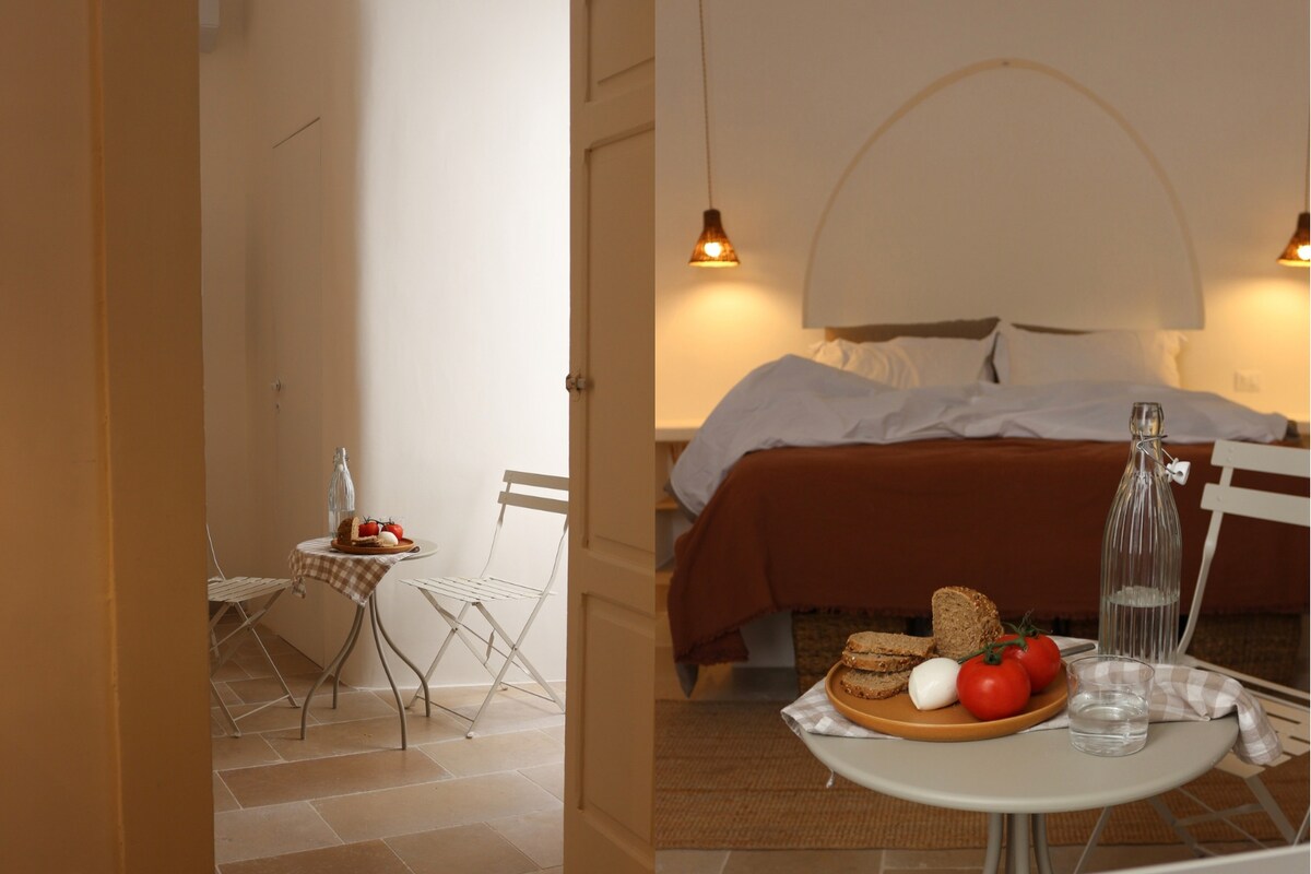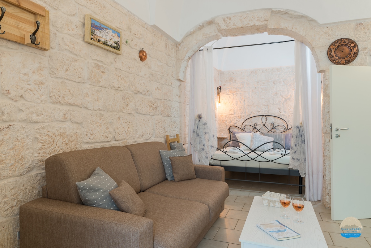 Cuir isteach gné ón aer... Beidh do chéadfaí sásta le radharc agus dearadh neamhghnách! Tá an teach i gcloch Ostuni ón 17ú haois, atá deartha chun aíonna a athghiniúint a dhéanamh leis na dathanna is féidir lenár dtalamh Puglia a thairiscint. Tá sé suite ar cheann de na cnoic ag breathnú amach ar an sráidbhaile ársa, cúpla céim ó chroílár bríomhar Ostuni. Tá an seomra leapa le cithfholcadán oscailte agus boghta réalta embellished le gnáth - luminary chun an t - atmaisféar a dhéanamh níos draíochtúla agus níos iontaí fós.