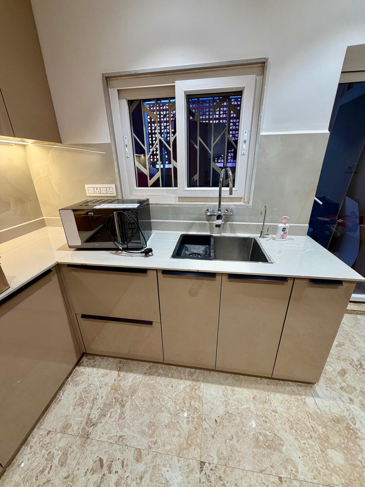 In áirithe go heisiach do Theaghlaigh agus do Thaistealaithe Aonair. Níl sé ar fáil do Ghrúpaí Cairde . Ná hiarr áirithint mura gcomhlíonann tú na critéir seo, le do thoil. ★ Príomhshuíomh - Suite i lár na cathrach (In aice le AshokNagar ar an bPríomhbhóthar), díreach 8 nóiméad (3 km) ón stáisiún iarnróid agus 15 nóiméad (6 km) ón aerfort. ★ Árasán Geataithe le Garda Slándála - Bain sult as suaimhneas intinne 24/7 inár bhfoirgneamh le garda tiomnaithe. Tá ardaitheoir agus páirceáil saor in aisce do charr amháin san áireamh.