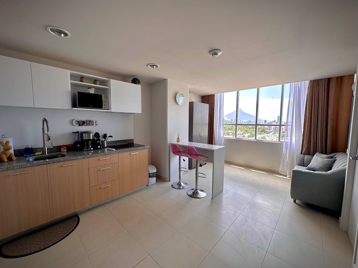 Críochnaigh árasán só leis an radharc is fearr ar Monterrey, atá feistithe go hiomlán, oiriúnach do shaoire ghnó nó do phléisiúir, suíomh den scoth, slándáil 24 uair an chloig, príobháideacht, ardaitheoirí, Wi - Fi, pá, teilifís pá, aerchóiriú (te agus fuar), páirceáil phríobháideach, tá limistéar tráchtála san fhoirgneamh freisin inar féidir leat bialanna agus siopa áise a aimsiú 24 uair sa lá.