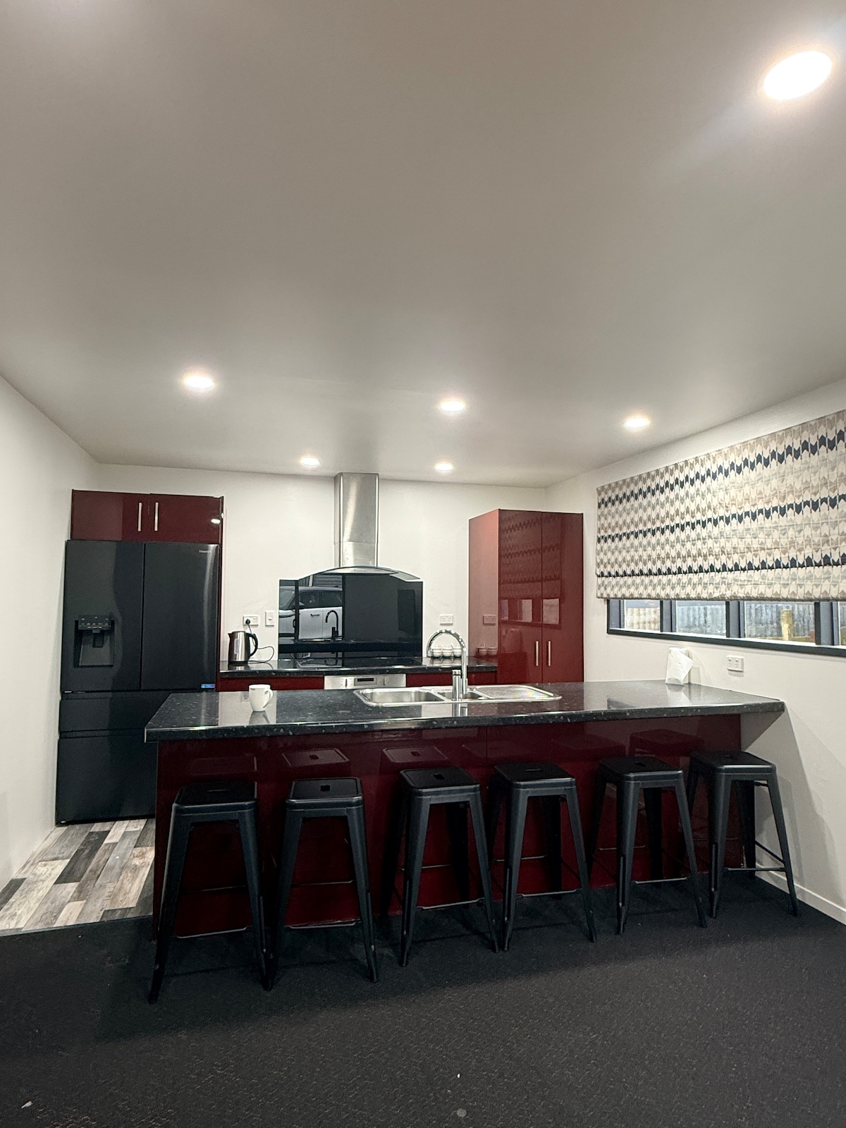 Soláthraíonn an teach aíochta álainn dhá sheomra leapa seo cistin iomlán, bia, tolglann, cúinne oibre, seomra folctha ina bhfuil leithreas ar leith, agus saoráidí níocháin iomlána. Lonnaithe go díreach trasna an bhóthair ó bhealach isteach Manfeild agus ó Pháirc Kowhai, achar siúil go croílár Feilding, agus gan ach 15 nóiméad sa charr go Palmerston North, is rogha iontach é an teach aíochta seo dóibh siúd atá ag iarraidh freastal ar imeacht Manfeild, cruinnithe gnó, cuairt a thabhairt ar chairde nó ar theaghlach sa cheantar nó turas a bheith acu ar shiúl.