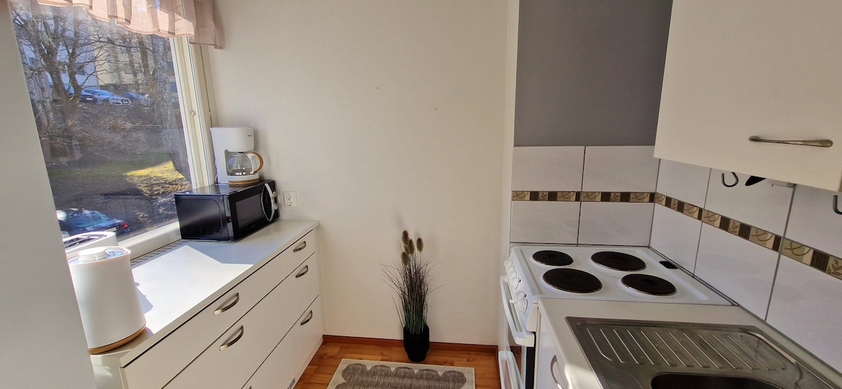 An radharc is áille ar an gcathair ag breathnú amach ar an gcuan agus ar an seanbhaile. Tá an t-árasán fíor-uathúil mar gheall ar na fuinneoga móra. Rinneadh athchóiriú nua-aimseartha ar an árasán, tá sé inrochtana, agus tá sé feistithe go maith. Cistin fhairsing, seomra suí agus seomra leapa ar leithligh. Spás oibre शांत le deasc inchoigeartaithe agus Wi-Fi tapa. Tá páirceáil saor in aisce ar fáil os comhair an fhoirgnimh. Tá seirbhísí, siopaí agus stadanna iompair phoiblí go léir in aice láimhe. Cuirtear dallóga agus cuirtíní dorcha ar fáil freisin. An chuid is fearr de Lappeenranta!