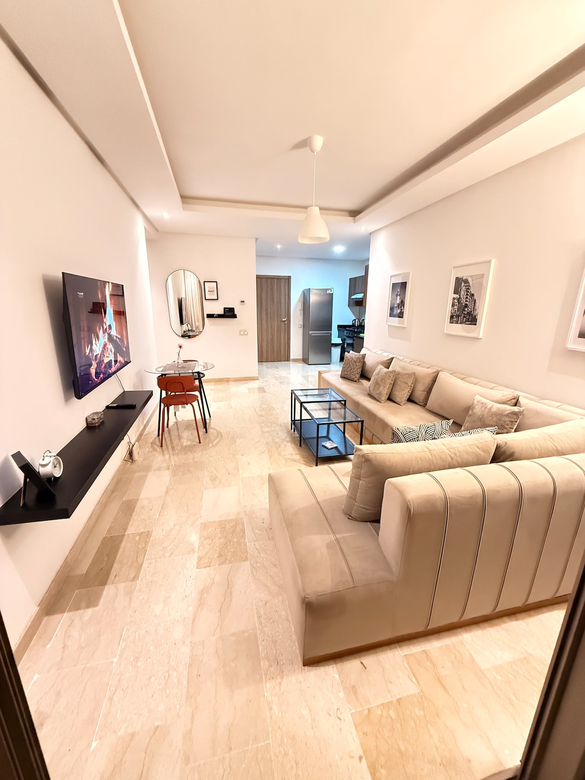 Magnifique appartement de 2 chambres près de l'aéroport Mohammed V Évadez-vous dans notre confortable appartement de 70 mètres carrés au cœur de Deroua, à quelques minutes de l'aéroport Mohammed V. Situé au premier étage d'un immeuble sécurisé du lotissement TISSIR , notre appartement offre un mélange parfait de commodité et de tranquillité.Ce logement familial est proche de tous les sites et commodités.
