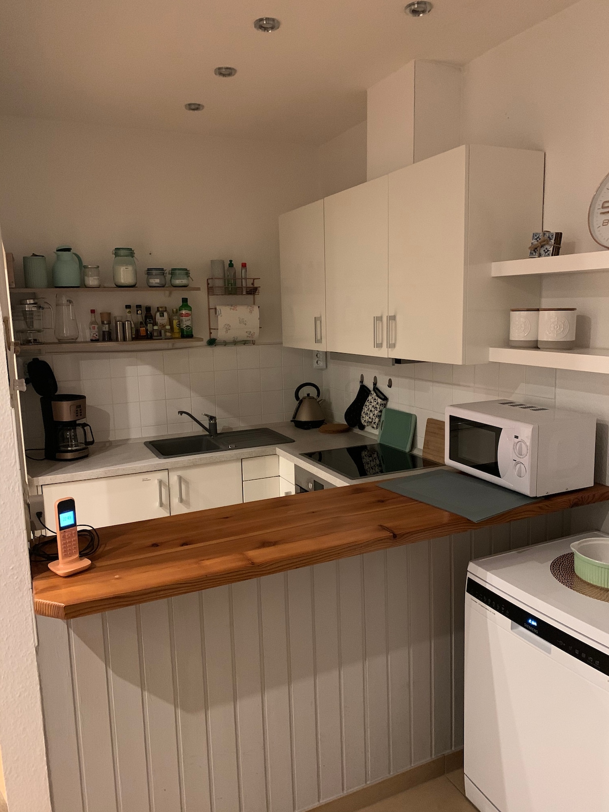 Rinneadh athchóiriú ar an árasán in 2020 agus rinneadh athchóiriú iomlán air sa phróiseas. Freastalaíonn sé ar suas le ceathrar agus tá sé suite thar a bheith lárnach. Más maith leat gníomh, tá an phromanáid abhann thart ar 2 nóiméad ar shiúl. Más fearr leat áit shocair, tá an t - árasán suite ar an dara hurlár agus tá ardán dín síochánta ag breathnú amach ar an ngairdín. Tógann sé 5 -10 nóiméad siúl chuig an stáisiún traenach (nasc le Lübeck). Cé nach féidir leat an t - uisce a fheiceáil, is féidir leat na báid farantóireachta móra a fheiceáil ó fhuinneog an tseomra leapa.