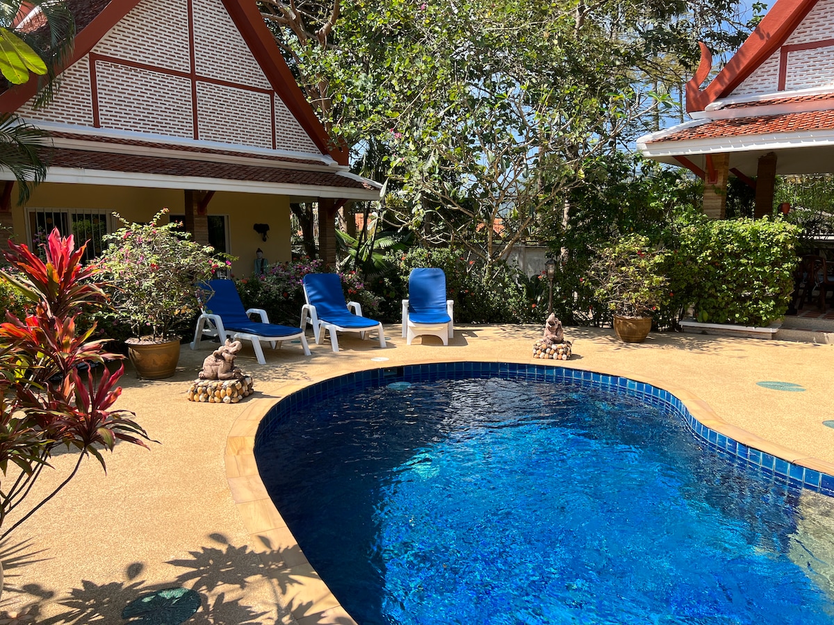 👫 Tugann Alan agus Nuch cuireadh duit chuig ár dteach; villa suaimhneach atá suite i measc gairdín trópaiceach méith a bhfuil ár linn snámha mhór phríobháideach timpeall air. 🏡 Tá an t-aon teach aíochta ar leith atá againn maisithe go blasta i stíl thraidisiúnta na Téalainne, agus tá sé feistithe le saoráidí sómasacha le haghaidh fanacht compordach, gan aon aíonna eile ar an réadmhaoin ach muid féin. 📌 Tá ár suíomh sábháilte agus ciúin ach fós gar go háisiúil do thránna, bialanna, beáir, siopaí, nithe is díol spéise agus go leor eile. ⚠️ Léigh gach rannóg le haghaidh sonraí tábhachtacha!!