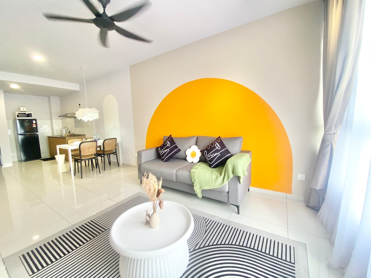 Do shaoire shuaimhneach ó shaol na cathrach. Bain sult as teach atá deartha go cúramach agus a bhfuil cothromaíocht idir stíl nua-aimseartha agus compord teolaí ann. Tá sé feistithe go hiomlán le saoráidí chun d’fhanacht a dhéanamh gan dua, agus tá sé foirfe do shaoirí gearra nó do thréimhsí fanachta níos faide. ✔ 2 Sheomra Leapa Chompordacha Teilifís ✔ Chliste & cainteoir ✔ 2 Balcóin ✔ Íontóir uisce Coway (rogha uisce te, fuar agus comhthimpeallaigh) ✔ Íontóir Aeir le haghaidh aer glan agus úr ✔ 1 Spás Páirceála Ainmnithe ✔️ Wi-Fi 200Mbps