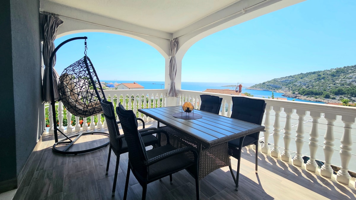 New cute and cozy apartment is situated in a small village Razanj near the Rogoznica in the middle Dalmatia. There are one bedroom, living room with kitchen, bathroom and balcony with beautiful view on the sea. All windows have sea view. There is a free parking lot. It is comfortable for 4 people. It has double bed in bedroom and big sofa for two persons in living room. Other facilites include a smart tv, air condition, 2 paddle boards, refrigerator, oven... The beach is only 20 meters away.