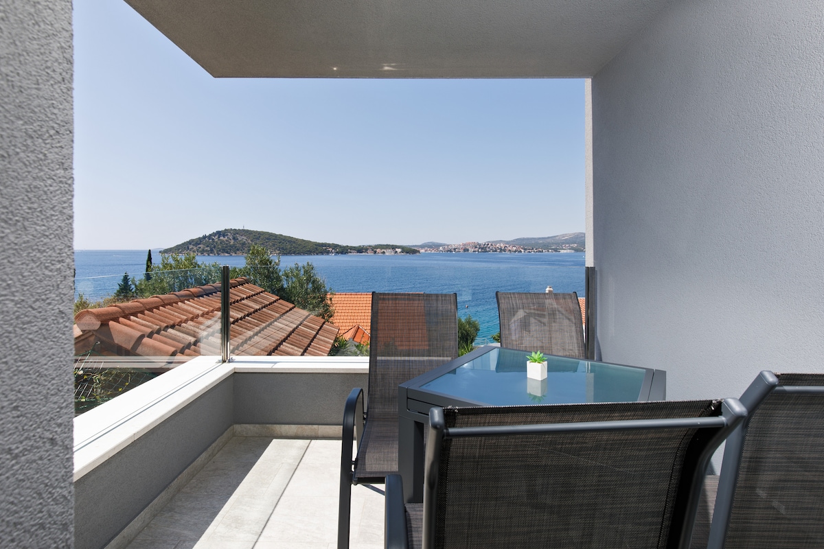 Fáilte go dtí ár Penthouse fíorálainn, tearmann sómasach atá suite ar bharr villa eisiach i gceantar álainn Rogoznica. Ullmhaigh le bheith faoi dhraíocht ag áilleacht ghalánta Mhuir Aidriad, mar go dtugann an penthouse seo radharc farraige tosaigh mesmerizing a bhreathnaíonn amach ar bhá gleoite Rogoznica.
