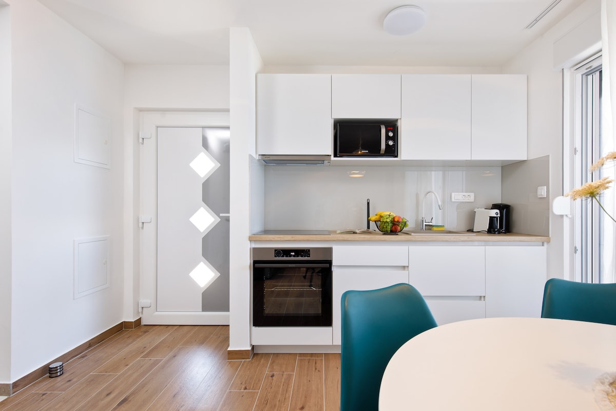 Tá ár n - árasán 45 m2 oiriúnach do 2 nó 3 dhuine. Is féidir leat taitneamh a bhaint as cistin feistithe, seomra suí grianmhar, seomra folctha feidhmiúil agus seomra leapa compordach. Tá na tíleanna kithen agus urláir á n - athchóiriú againn faoi láthair, mar sin an samhradh seo (2024.) beidh sé úrnua. Agus an chuid is fearr - terrase ag breathnú amach ar bhá, dírithe ar an iarthar le sunsets álainn.