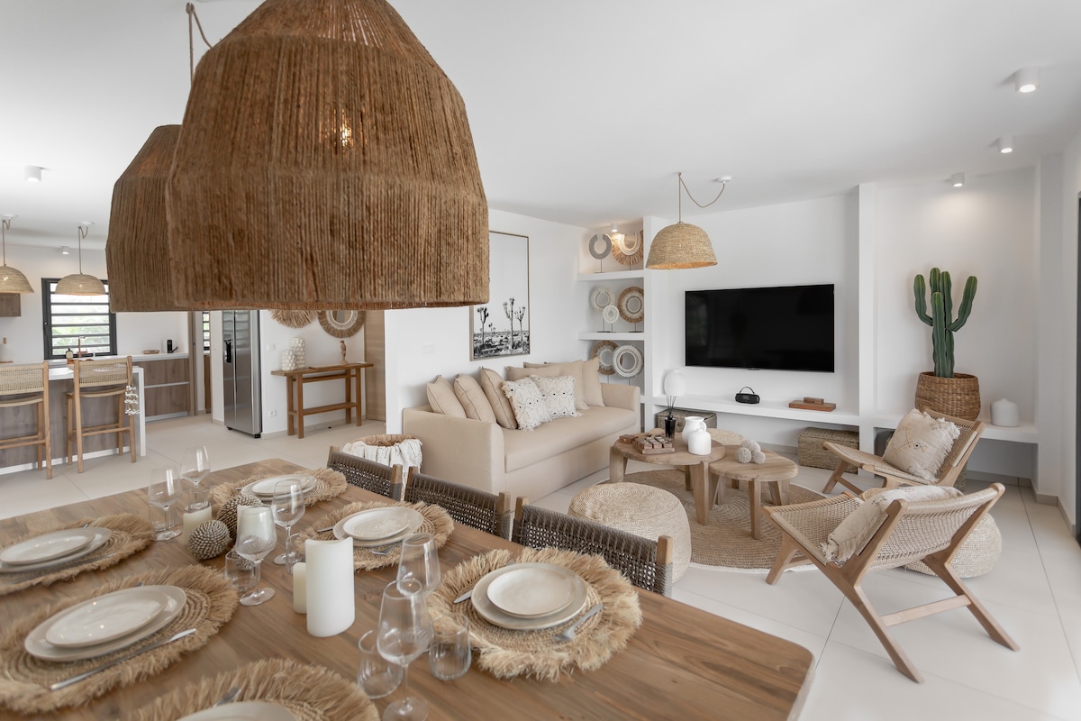 Tá “Villa Senorita” suite san áit chónaithe phríobháideach agus in Áiteanna Cónaithe Mandara daingnithe. Tá 164sqm/1766 troigh chearnach de spás taobh istigh agus taobh amuigh le WI - FI ar fud an árasáin nua - aimseartha úrnua seo. Tá dhá phríomhsheomra leapa san Árasán ina bhfuil dhá sheomra folctha, seomra suí ina bhfuil áit chistine, ardán taobh amuigh, agus áit níocháin. An dá sheomra leapa ar fad, tá radhairc neamhbhactha iontacha ar an aigéan, Guana Bay Beach, Saint Barthélémy agus nádúr álainn an oileáin sa seomra suí.