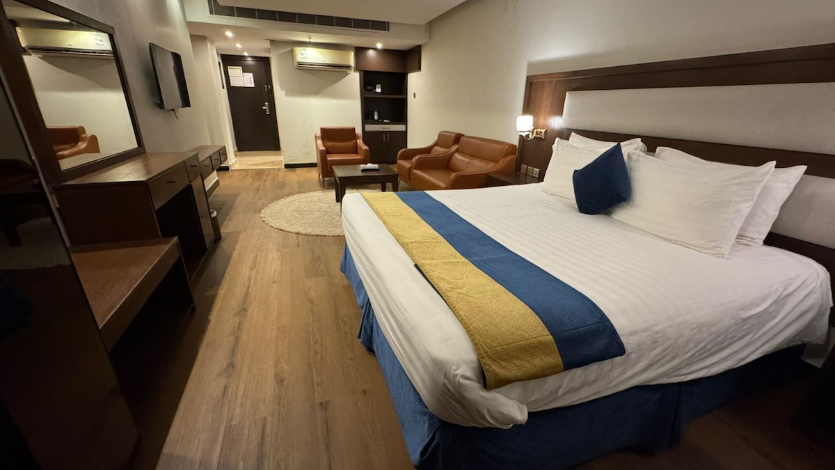Lóistín príobháideach sainiúil in óstán cúig réalta (Holiday Inn Hotel) i gcomharsanacht Aziziyah in áit fhoirfe ina bhfuil go leor bialanna, caiféanna agus do riachtanais go léir. Tá iompar ó agus go Haram ar fáil ar fud an chloig (thart ar gach 15 go 20 nóiméad). Tá an seomra deartha chun compord agus croíúlacht a thabhairt don aoi trí shoilsiú agus leaba chompordach chun eispéireas uathúil a chur ar fáil. Is mian linn tú fanacht taitneamhach.