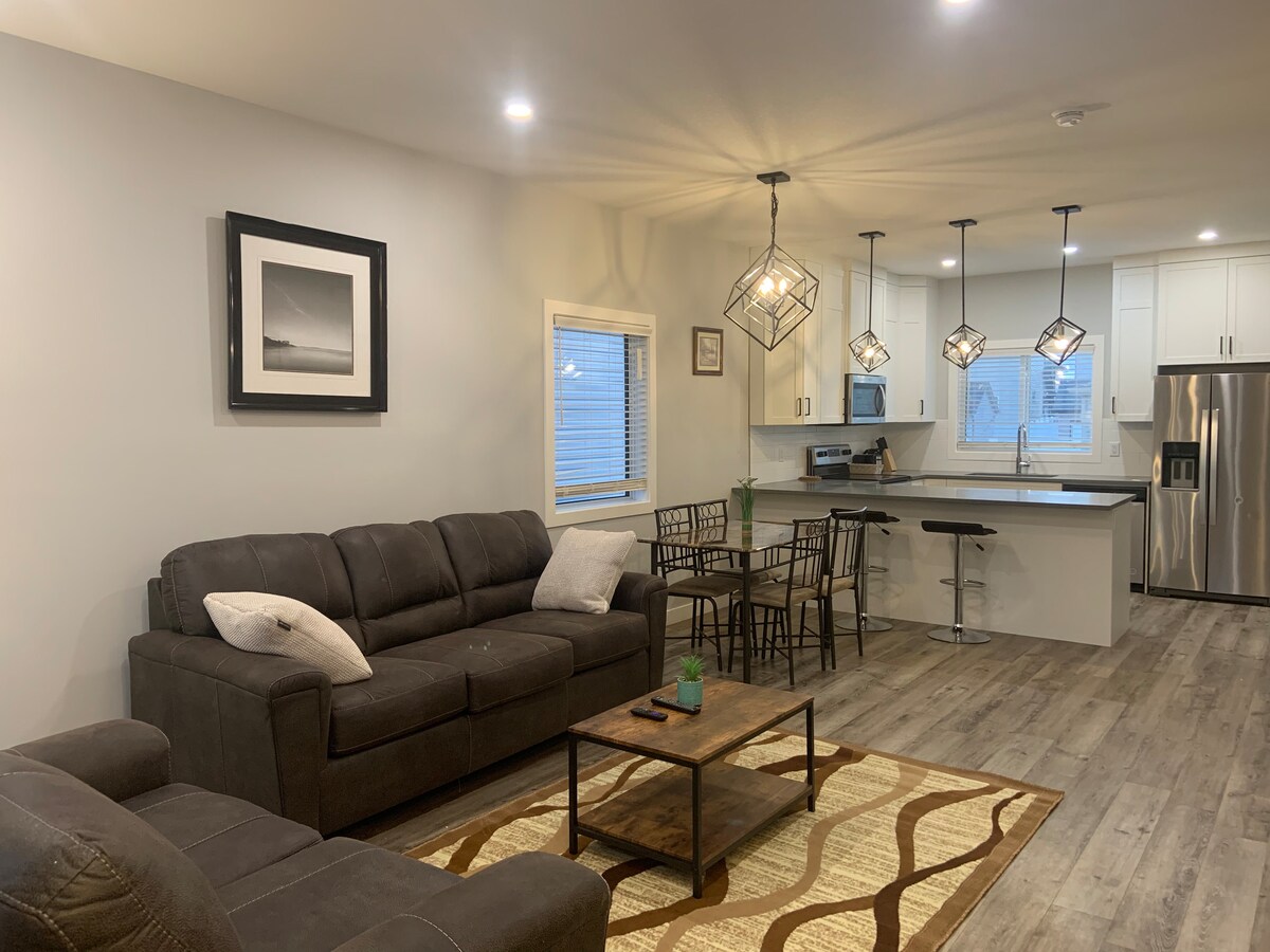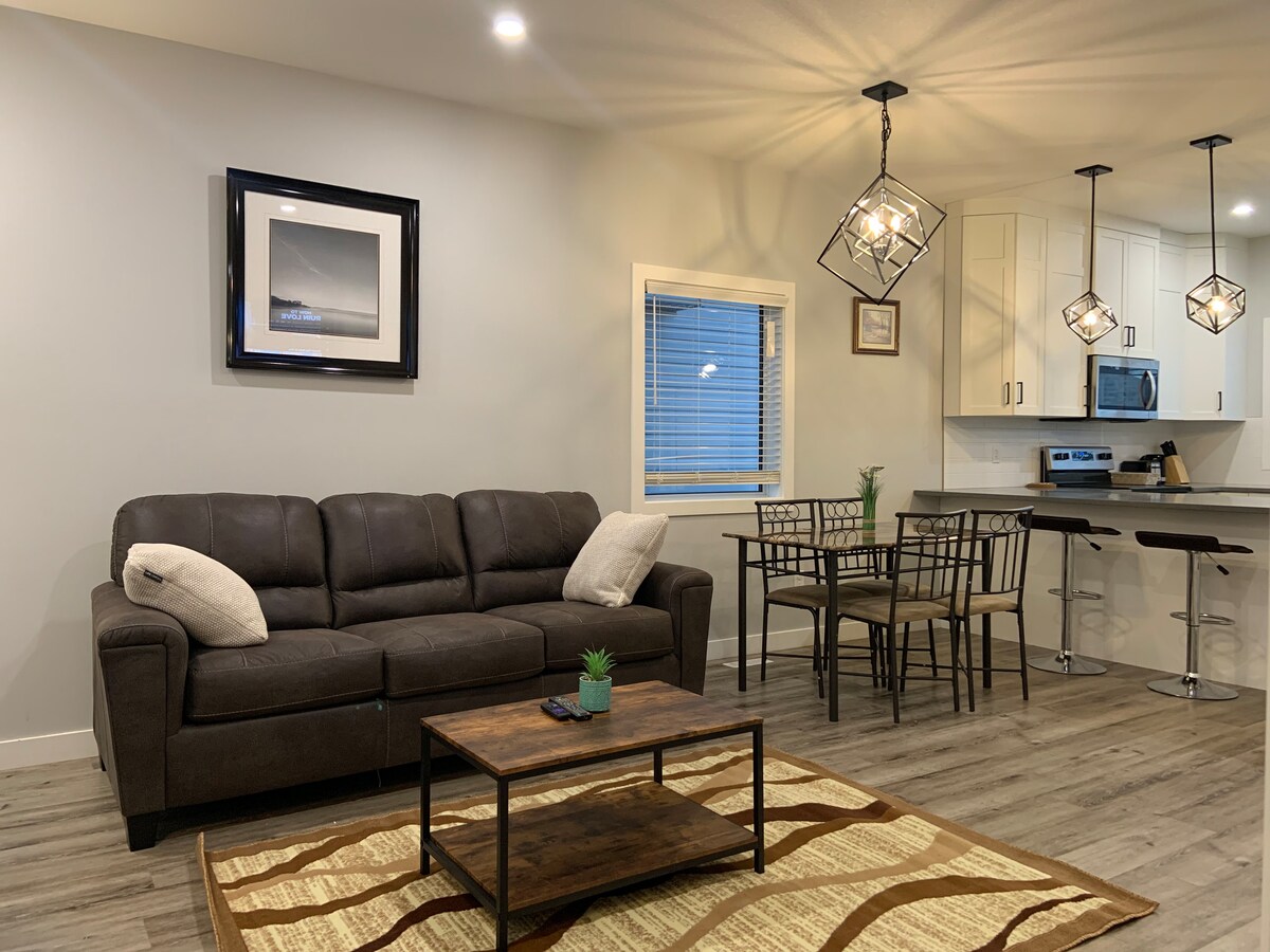 Fáilte chuig ár svuít phríobháideach shómasach lena bhealach isteach príobháideach féin. Seomra leapa teolaí le leaba bhanríona, seomra folctha iomlán in aice láimhe. Foirfe le haghaidh gnó nó fóillíochta. Buaileann compord nua - aimseartha le stíl le haghaidh fanacht speisialta. Áit áisiúil le fanacht in Regina! Níl ach 8 nóiméad ar shiúl ó Aerfort Regina agus cúpla nóiméad ar shiúl ón bpríomhbhealach (Ring Road) a ligeann duit rochtain a fháil ar an gcuid eile den chathair i mbeagán ama! I gceann 10 nóiméad, is féidir leat an Downtown a bhaint amach. Áit iontach duit le fanacht!