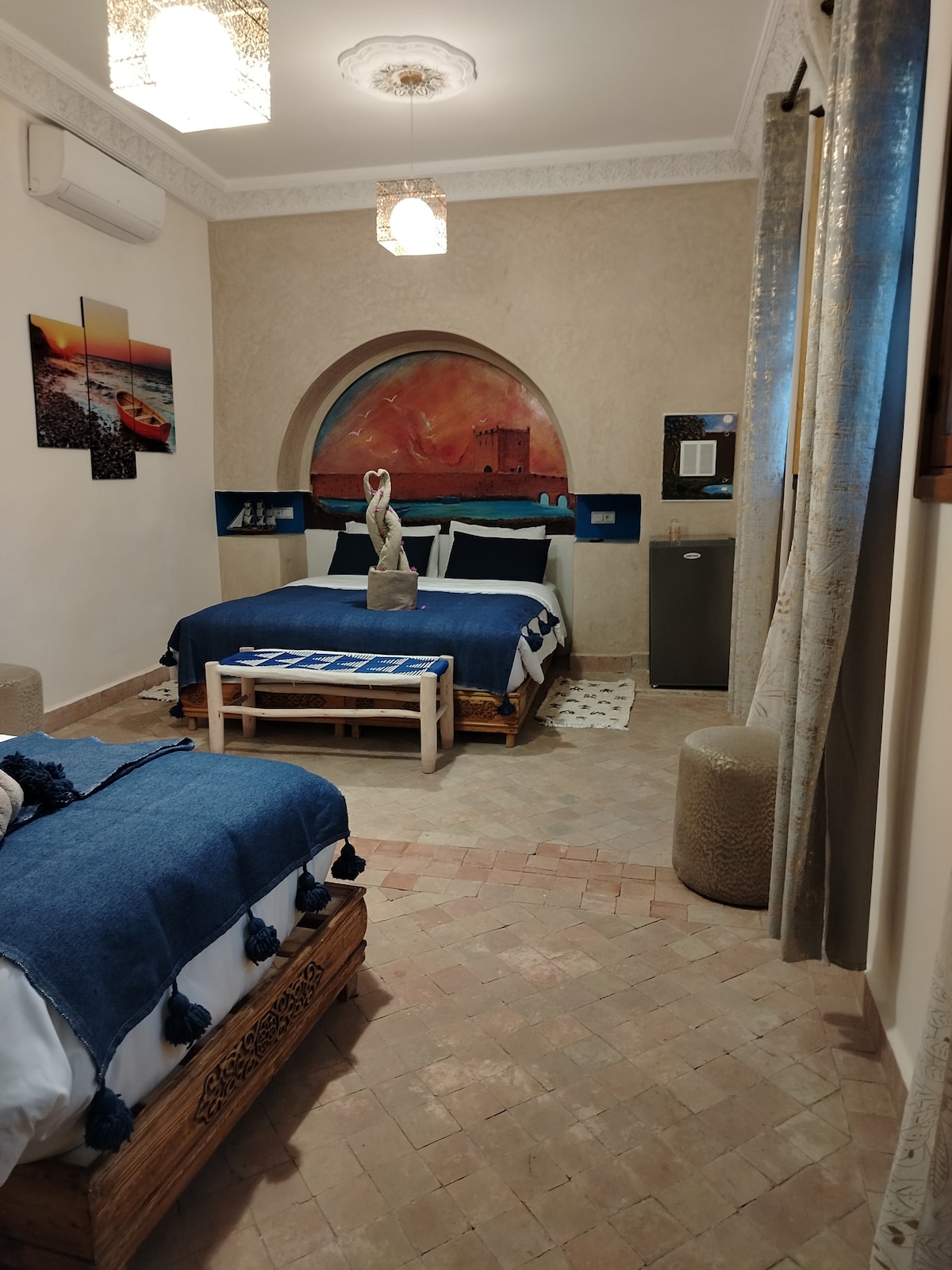 Stay in a charming riad in the heart of Marrakech Medina! Our riad features 5 authentic rooms, each with a private bathroom. This listing is for one room only, and you can choose your favorite upon arrival. Enjoy a unique mix of Moroccan tradition and modern comfort, perfect for couples, solo travelers, or friends. Just steps away from souks, monuments, and local restaurants, it’s the ideal base for an unforgettable Marrakech experience.