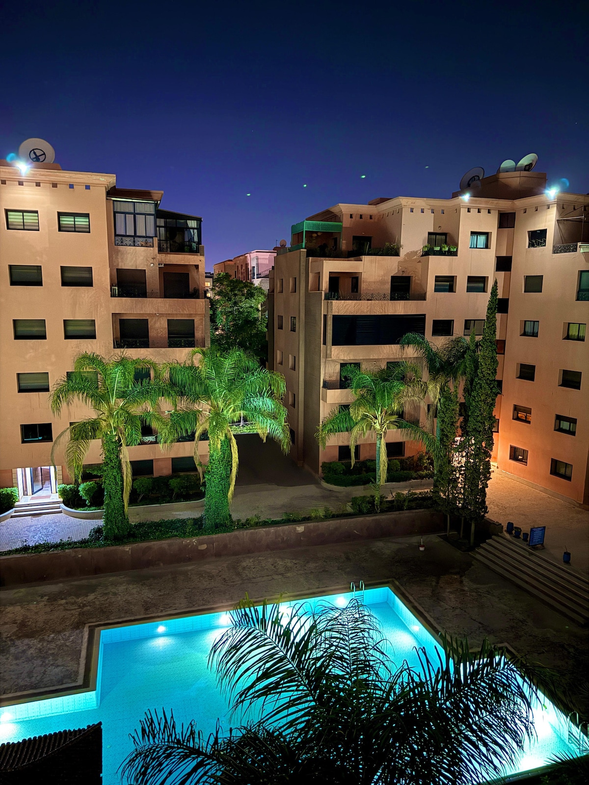 ✨ Séjournez dans le confort absolu à la Résidence Jacaranda et place de parking ✨ Découvrez un appartement moderne et cosy idéalement situé proche de Guéliz. Avec sa décoration raffinée et ses équipements confort , profitez d’un séjour unique au cœur de Marrakech. 🌟 Points forts : Ambiance chaleureuse et accueillante Appartement de standing, parfait pour vos vacances À seulement 5 min en voiture de Guéliz À 3 min du centre commercial Marjane, avec piscine à proximité.