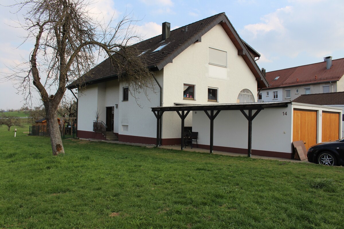 Árasán teolaí Ard - Stiúrthóireacht do dhaoine ar mian leo an dúlra a bheith timpeall orthu, ach ar mian leo naisc sholúbtha thapa le Stuttgart agus leis an gceantar máguaird. Is furasta teacht ar Esslingen, Göppingen, Schorndorf, Ulm, Ludwigsburg freisin. Tá an t - árasán suite sa Nassachtal álainn. Ceantar Baiereck. "The Valley of the Happy ". Nádúr íon! Ideal le haghaidh hiking, rothaíocht ... scíth a ligean. Is féidir teacht ar an Remstal lena fhíonghoirt áille i gceann 7 nóiméad freisin. Is maith linn taistealaithe gnó freisin.