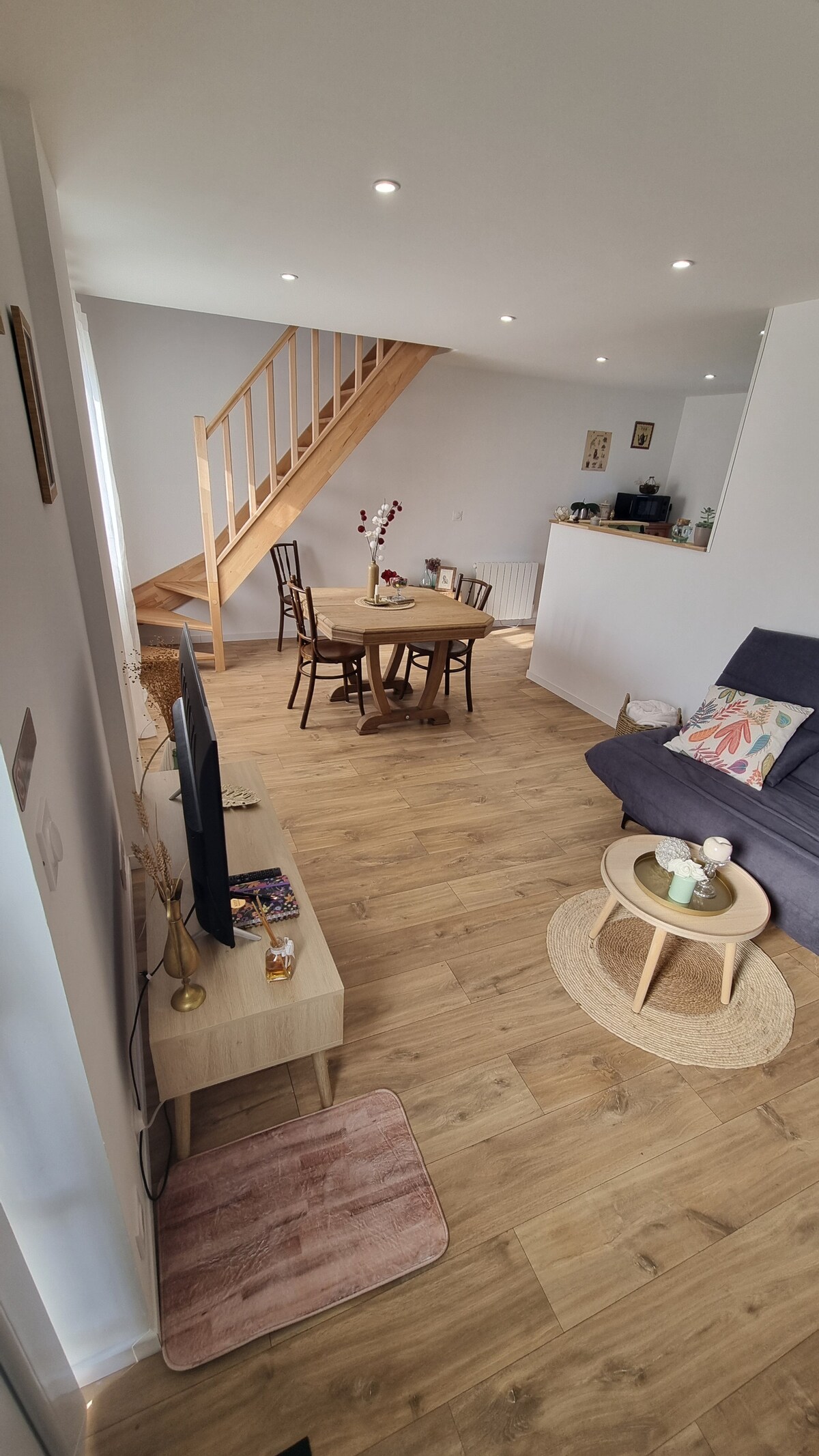 Suite i sean-tigh feirme, is seomra aíochta athchóirithe go hiomlán é Le Cottage, a bhfuil aerchóiriú ann, a dearadh chun fíor-áit tearmainn a thabhairt duit. Bain sult as spás cluthar compordach ina bhfuil go leor saoráidí atá dírithe ar d’fholláine. ✨ Spá príobháideach le folcadán balneateiripe, seomra allas infridhearg Gléas caife agus citeal (tae agus caife ar fáil) Cuisneoir agus micreathonnán 🔊 Callaire Marshall Rochtain ó threalamh teilgeora ar chainéil YouTube, Netflix, Disney+ agus Canal+