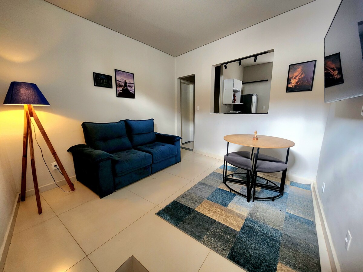 Chalés Vila Carrancas - Aonad Centro Lonnaithe díreach 250 méadar ó lár na cathrach, cuireann Chalés Vila Carrancas Centro fanacht ciúin ar fáil, leis an gcompord agus an áisiúlacht a bhaineann le bheith gar do gach rud a theastaíonn uait. Tá balcóin i ngach sealla ina bhfuil líonra, teilifíseán ar scáileán cothrom, WI - FI, áit itheacháin, cistin fheistithe agus seomra folctha príobháideach. Bain sult freisin as an gcúirt eitpheile linn snámha agus gainimh san áit choiteann, atá inrochtana do gach aoi.