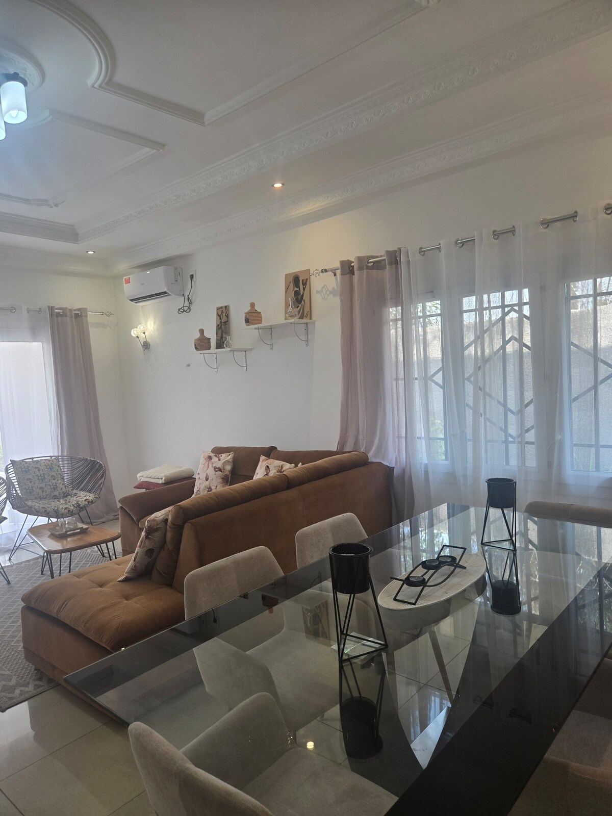 2 chambres salon meublé 📍 Quartier : mpita 📍 Ville : pointe noire 🇨🇬 📍Zone : derrriere le club hippique de mpita 📍Situer dans une cour de 4 portes très discret 2 appartements à l'étage et 2 appartements au rez de chaussé 📍2 chambres salon (65.000/jour) Chaque chambre avec salle de bain 📍1 salle à mangée 📍Cuisine américaine, bouteille de gaz, gazinière frigot et couvert de cuisine disponible 📍Climatisation, bâche à eau, parking, WiFi, groupe électrogène