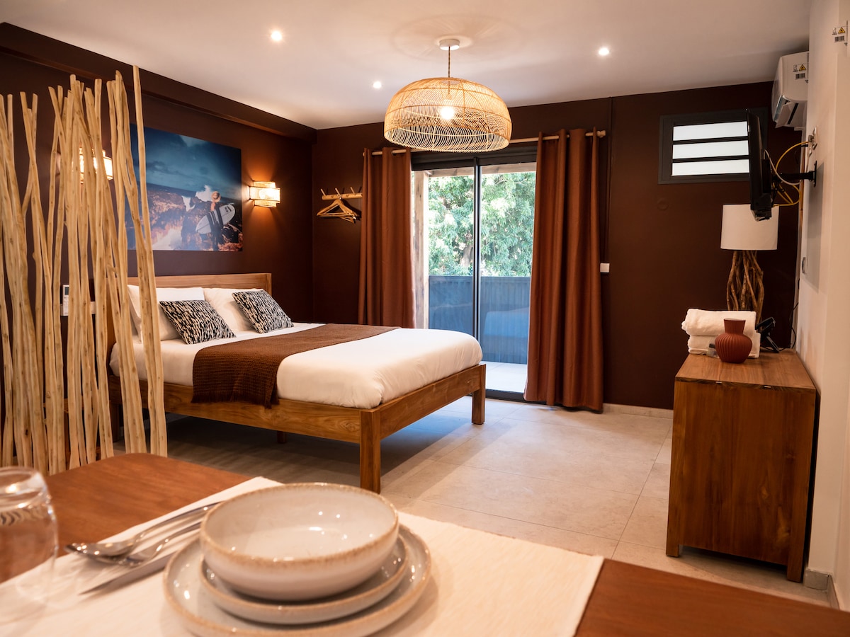 Diongbháilteacht óstáin le gné dhaonna le coincheap a thairgeann compord óstáin agus neamhspleáchas iomlán do lucht saoire le haghaidh fanacht is taitneamhaí do theaghlaigh nó do chairde. Seomraí ar fad ina bhfuil seomra cithfholcadáin ina bhfuil ardán nó gan ardán. An rogha saor in aisce chun dul chuig bialann nó do bhéilí a ullmhú sa chistin atá ar fáil duit, atá feistithe go foirfe, ag oscailt isteach ar sheomra lasmuigh i ngairdín trópaiceach