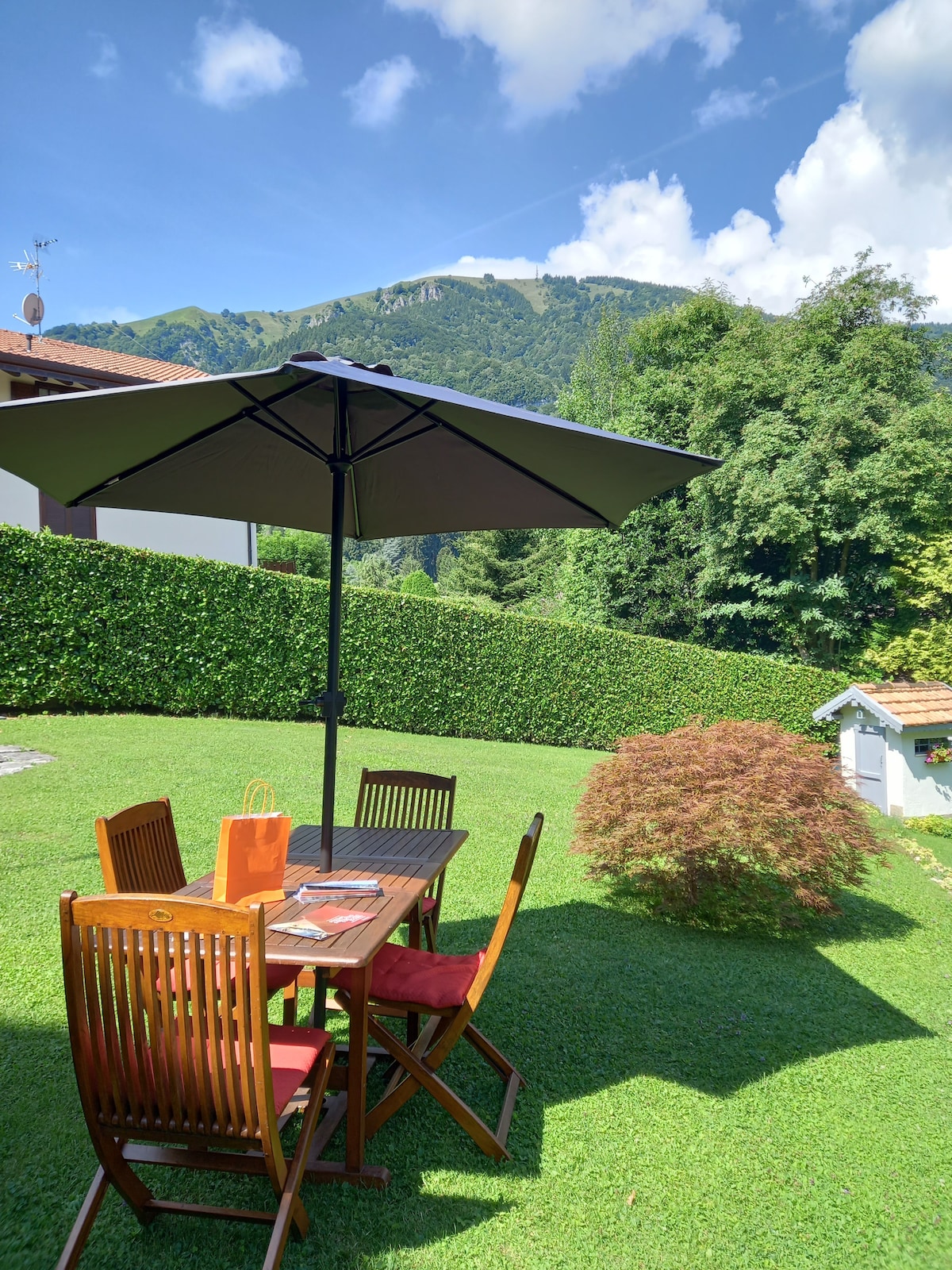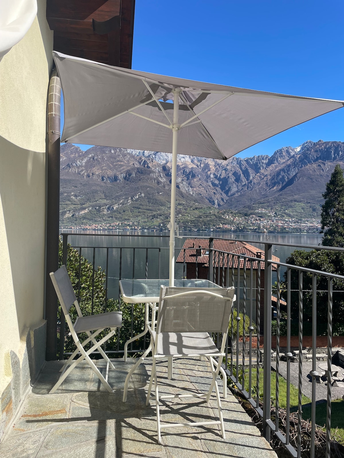 Teach locha beag álainn 70m2/750 troigh chearnach ina bhfuil gairdín príobháideach agus láthair pháirceála. Radharcanna iontacha ar an loch ón ngairdín, ón ardán & ó gach seomra! Coimeádta go cúramach taobh istigh le haird fhíorálainn ar mhionsonraí. Suaimhneach, príobháideach agus suaimhneach - foirfe le haghaidh scíthe iomlán. Siúlóid 5 nóiméad go dtí an áit snámha is gaire sa loch. Tá áit tholgach shómasach agus spás bia alfresco feistithe sa ghairdín grianmhar, le radhairc iontacha ar an loch (& teach George Clooney!:) Na radhairc is fearr de luí na gréine ag Loch Como!