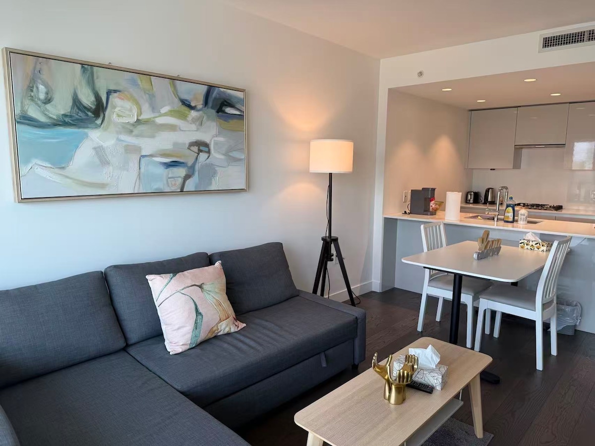 Spás Stylish & Compordach – Foirfe do Thurais Ghrúpa Sonraí Tá an 🔑 áit go léir príobháideach – ní roinntear rud ar bith 🚶 Níl ach cúpla nóiméad siúil chuig bialanna, siopaí caife agus ollmhargadh ❄️ Aerchóiritheoir 🛏️ 2 sheomra leapa 🛁 2 sheomra folctha 🛋️ Seomra suí fairsing agus áit itheacháin 🍳 Cistin lánmhéide – iontach chun béilí a chócaráil sa bhaile ♿ Níl staighre ná céimeanna ar bith ann Comaitéireacht ✈️ 13 nóiméad go dtí Aerfort YVR 🛍️ 15 nóiméad go dtí YVR Outlet Mall 🚆 11 nóiméad sa charr chuig stáisiún SkyTrain