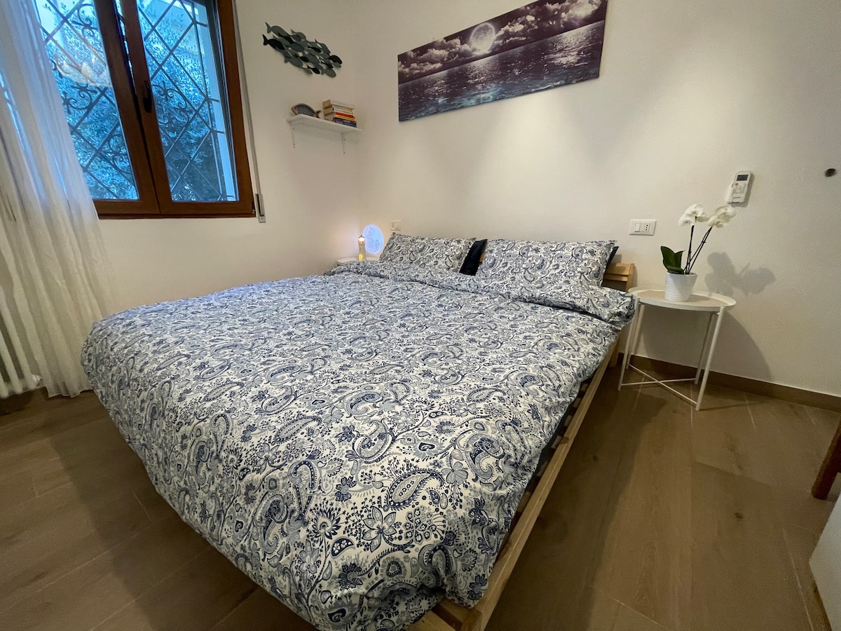 Camera Singola, con bagno ad uso esclusivo, moderna nuova con ingresso indipendente. Posizionato al piano Terra, dotata di TV, armadio, tavolo con sedie, piccola cucina completa di: piano induzione, frigorifero, stoviglie, "Macchina per caffè MOKA" e clima tutto indipendente. Bagno ampio con doccia, asciugacapelli. Aria condizionata, Sistema di trattamento aria con filtri antipolline e inquinamento, wifi uso gratuito.