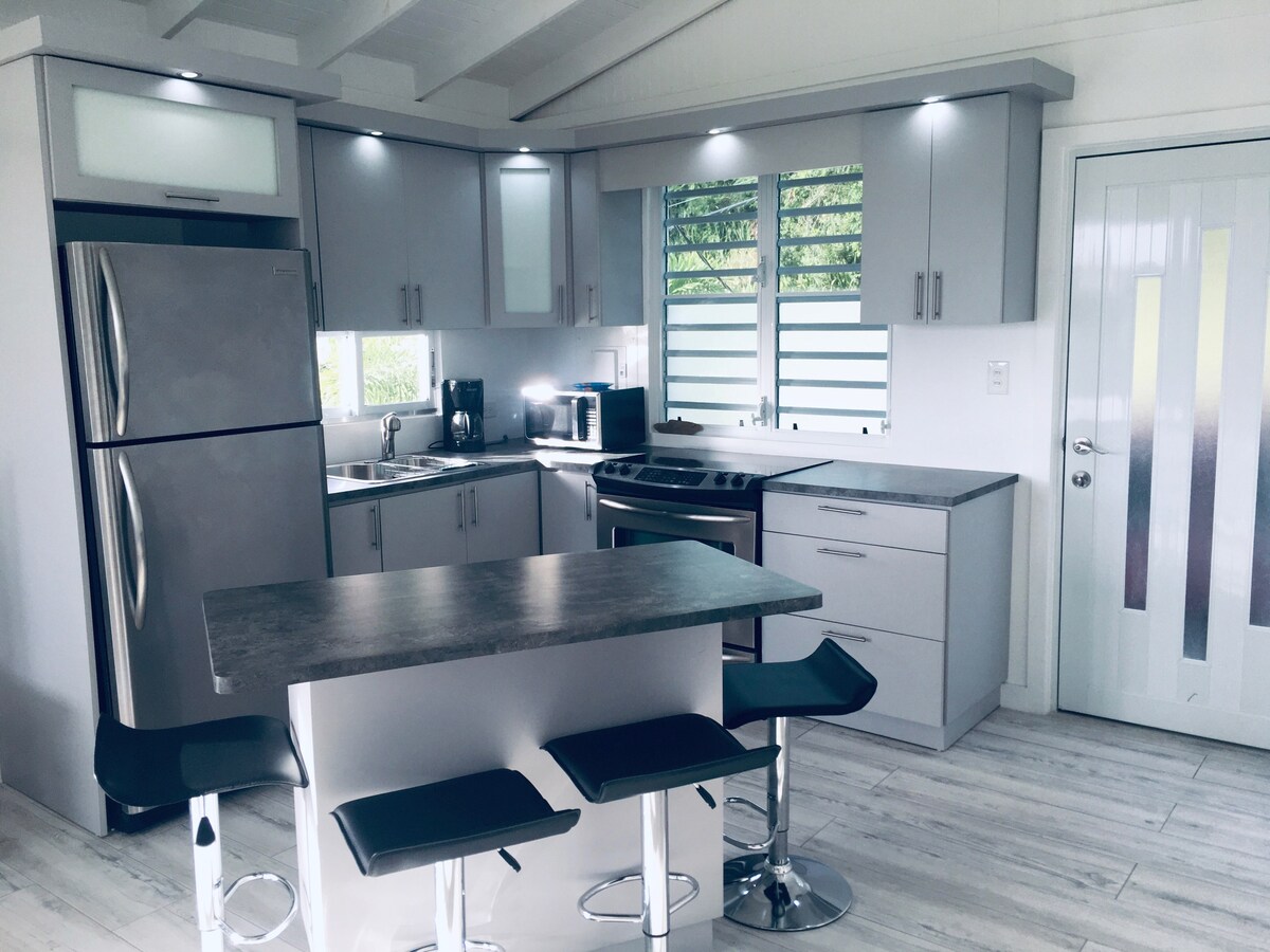 Fáilte go dtí ár stiúideo enchanting neadaithe i dufair mhéith Rincon. Tum thú féin sa chumasc foirfe de shuaimhneas agus de eachtraíochta agus tú ag tabhairt aird ar an áilleacht nádúrtha a bhaineann leat. Bródúil as ár casita cluthar comhleá comhchoiteann de chompord nua - aimseartha agus charm rustic. Dúisigh go dtí siansa na n - éan trópaiceach agus bain sult as do chaife maidine ar an mbalcóin phríobháideach, áit a gcuireann radhairc den dufair mhéith fáilte romhat. Tugann an dearadh oscailte faoi dhíon - lasmuigh cuireadh duit do scíth a ligean i bhfíor - thearmann.