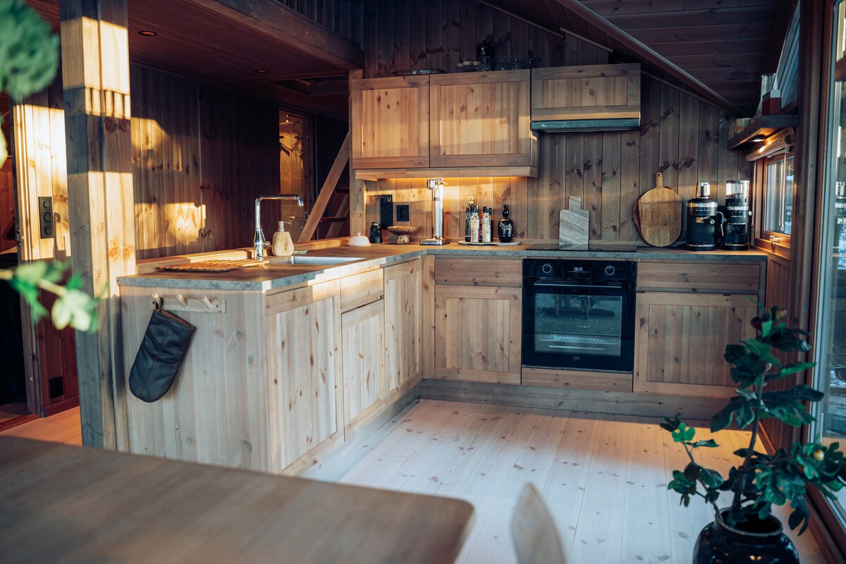 Múscail leis an ngrian íseal ar maidin os cionn an mharsha agus radhairc lánléargais ó dheas. Tá an cábán suite go hard agus tá sé go hiomlán suaimhneach, agus tá go leor fuinneog ann a ligeann isteach an dúlra. Dearadh Nua-Aimseartha Nordach, trí sheomra leapa agus gach compord amhail meaisín espresso, miasniteoir agus criosanna teo le haghaidh compord. Tosaíonn an cosán sciála trastíre díreach faoi bhun an chábáin, anseo tá tú ceangailte le líonra uathúil cosán Sjusjøen. Tá deiseanna iontacha fánaíochta díreach taobh amuigh den doras.