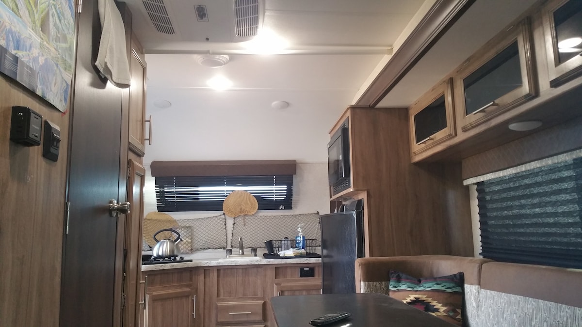 Is é seo an 17 troigh nua Hummingbird RV agus Celina is ainm di. Bainfidh tú taitneamh as radhairc iontacha, clós príobháideach agus lóistín teolaí. Tá Celina réidh d'aíonna ag a bhfuil na saoráidí go léir a theastaíonn uait le haghaidh fanacht compordach. Cuirfidh Cindy fáilte romhat agus beidh siad sásta tú a chur ar an eolas faoi na gníomhaíochtaí go léir atá ar fáil in Taos.