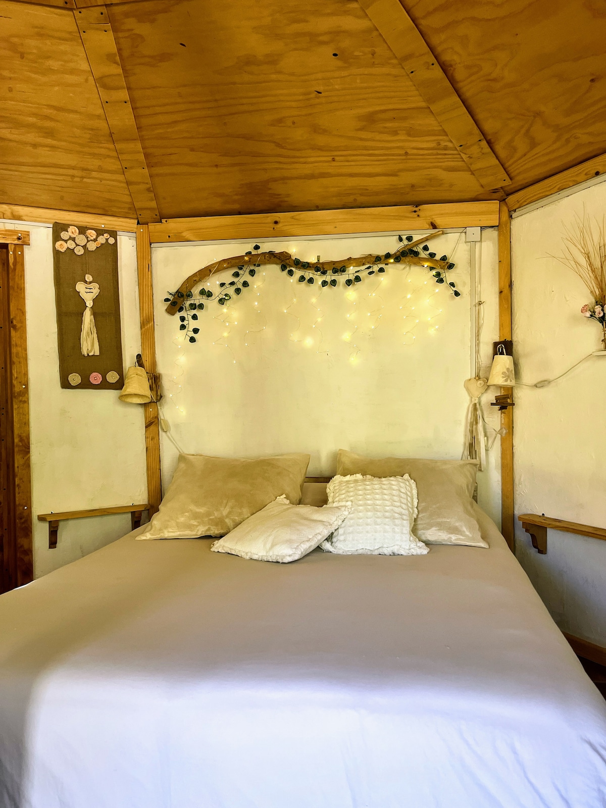 Is cábán é atá suite ag bun sléibhe, le fuinneoga a ligeann duit taitneamh a bhaint as radharc álainn ar chnoc Peralillo agus ar an spéir stáiriúil san oíche. Má tá tú ag lorg áit chiúin agus bain sult as an dúlra, is é seo an áit cheart. Tá go leor bealaí againn in aice láimhe le haghaidh turais agus fánaíochta. Tá seirbhísí rothair againn. * Níl Wi - Fi sna cábáin, ach is féidir linn iad a roinnt i gcásanna ar leith.