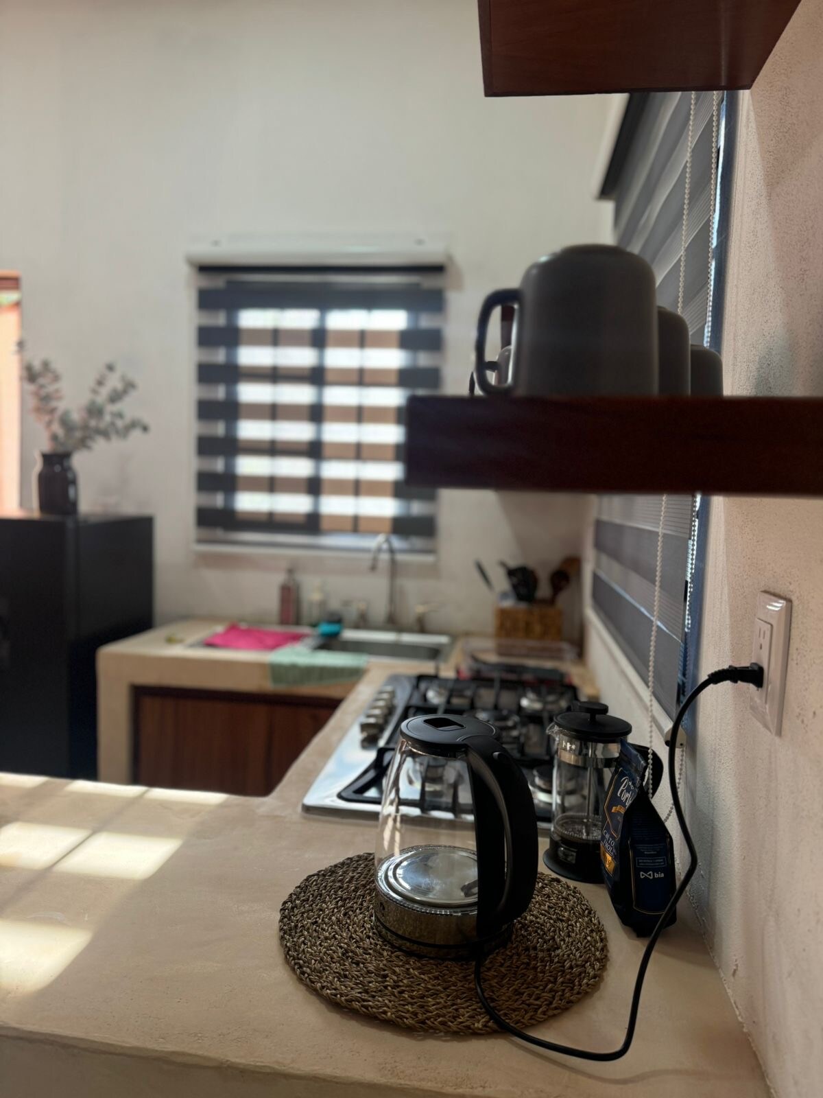 Fáilte go Villa Gadi, villa príobháideach nua galánta in Manzanillo, atá oiriúnach do pheataí, áit a mbeidh tú timpeallaithe ag só, suaimhneas agus dearadh nua-aimseartha. Lig do scíth sa linn snámha bheag théite (8 troigh 2 orlach × 4 troigh 3 orlach × 2 troigh ar doimhneacht, gan scairdeanna), bain sult as luí na gréine ón ngairdín dín, agus ullmhaigh dinnéar san oigheann adhmaid nó ar an ngríoscán beárbaiciú. Lig do scíth i hamóc faoin ngaoth thrópaiceach. Aerchóiriú ar fud na villa, lena n-áirítear 3 sheomra leapa ina bhfuil leapacha compordacha agus teilifíseáin. Níl ach turas 10–15 nóiméad idir tú féin agus an trá.