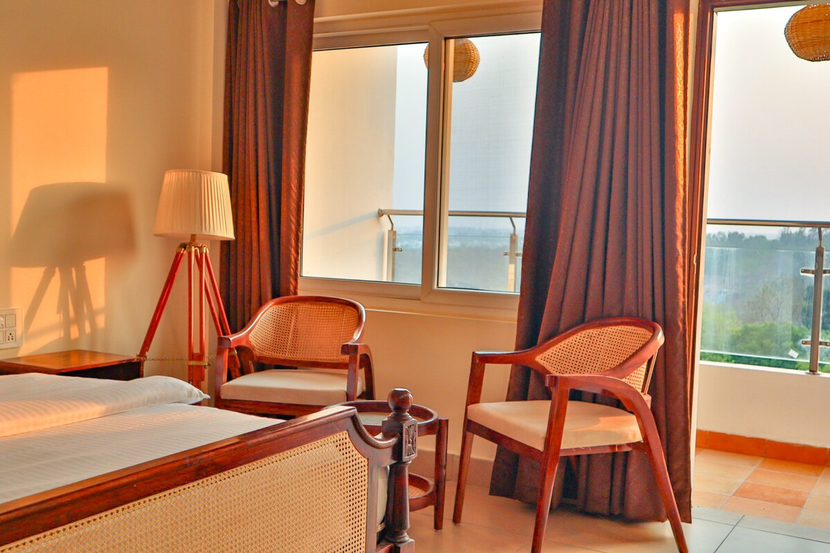 Téigh isteach sa seomra fíorálainn seo ina dtagann suaimhneas le chéile go sómasach, ina bhfuil radharc thar na bearta ar abhainn mhaorga Ganges. Cibé acu an bhfuil tú ag baint súp as do chaife ar maidin nó ag gabháil do mhanglam tráthnóna, tugann atmaisféar suaimhneach na habhann cúlra iontach do gach nóiméad. Agus gach éirí agus luí na gréine ag péinteáil an spéir le dathanna iontacha, cuireann an seomra seo eispéireas ar fáil a sháraíonn an gnáthrud, ag tabhairt cuireadh duit tú féin a thumadh in áilleacht shíoraí shárshaothar an dúlra.