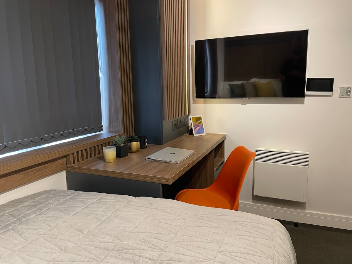 Téigh siar agus lig do scíth sa spás galánta seo atá suite i gcroílár chathair Leicester. Tá an t - árasán só fairsing seo feistithe go maith agus is féidir leis freastal go compordach ar suas le 4 aoi. Tá teilifíseán cliste 55 orlach sa tolglann le Netflix, YouTube srl agus tá Wi - Fi ar fáil freisin. Tá leaba thoilg ann ina bhfuil an dara sraith d'éadaí leapa a iompaíonn ina leaba dhúbailte iomlán. Tá seomra folctha mór só ann ina bhfuil earraí níocháin curtha ar fáil. Tá an chistin nua - aimseartha feistithe go hiomlán le fearais nua - aimseartha.