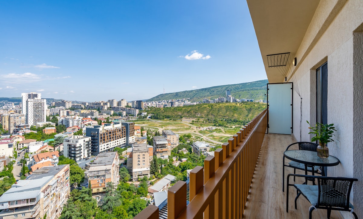 Bain sult as fanacht síochánta san árasán seo le balcóin phríobháideach, atá suite go díreach i bPáirc Mziuri — tearmann glas méith i gcroílár na cathrach. Foirfe do thaistealaithe aonair, do lánúineacha, nó do chianoibrithe atá ag lorg compoird, áise agus dúlra díreach taobh amuigh den doras. Is éalú cathrach foirfe é seo le gach compord nua - aimseartha. Ciallaíonn cónaí san árasán seo go bhfuil tú i lár Tbilisi, ach go bhfuil tú timpeallaithe ag síocháin agus áilleacht an dúlra — cothromaíocht neamhchoitianta de shaol bríomhar na cathrach agus spás glas suaimhneach.