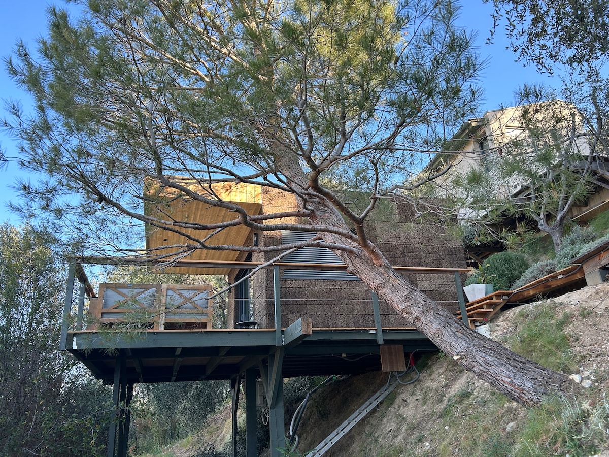 cábán teolaí i gcroílár an dúlra in aice le deas