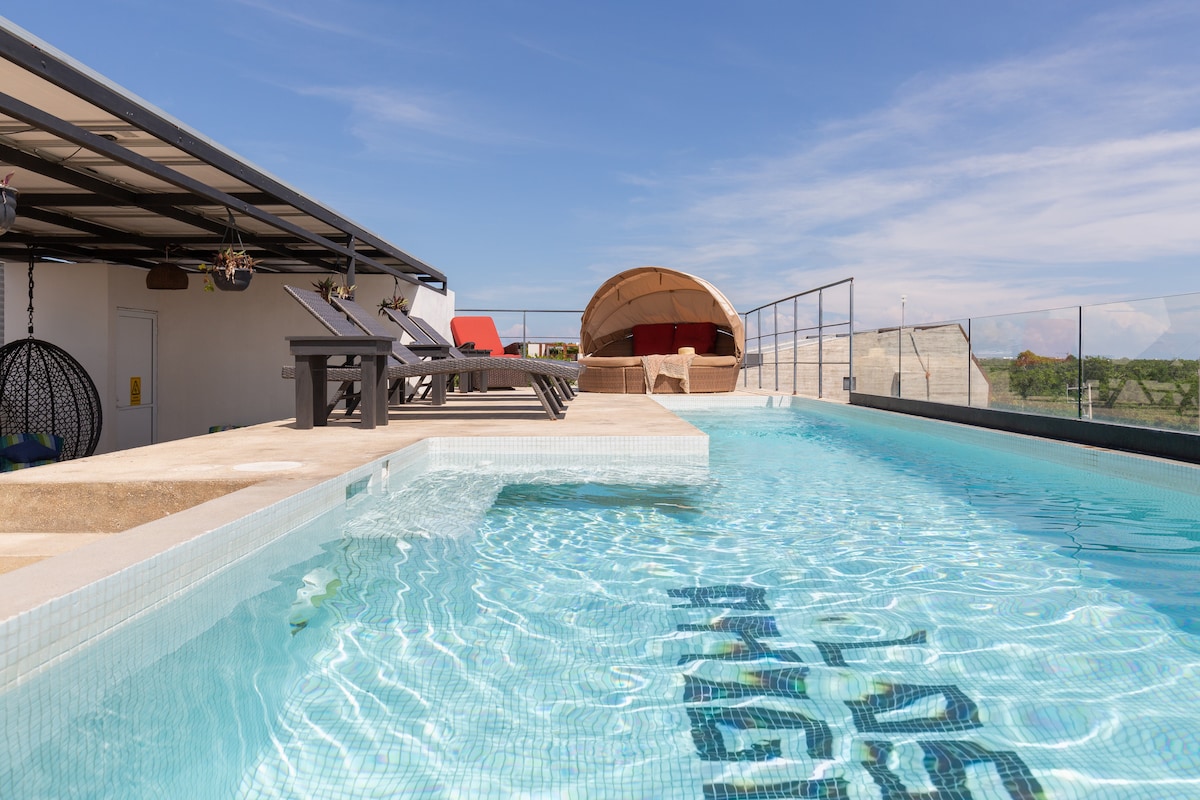 - Lóistíní ar cíos ag a bhfuil linn snámha Riviera Maya
