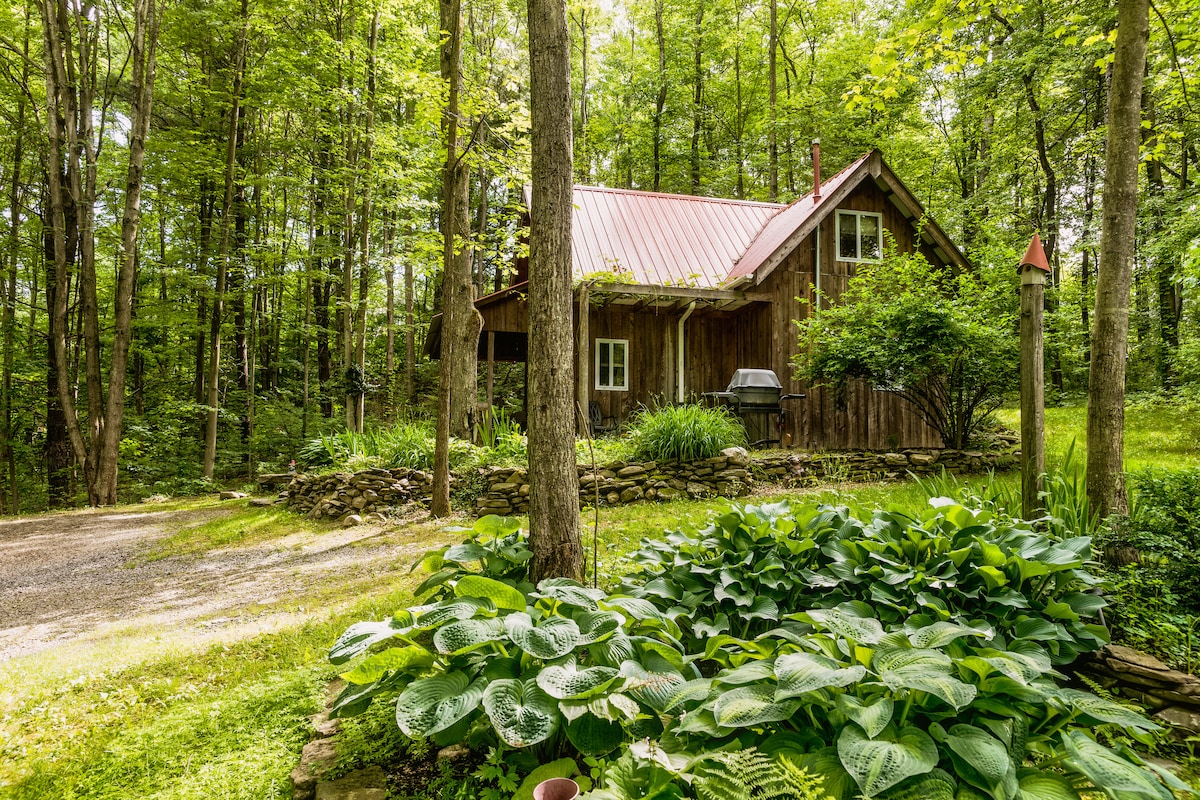 Neadaithe i ngarrán de sprúis na hIorua, tá do shaoire shuaimhneach chábáin i gcroílár na Lochanna Méaracha. Tógtha ag siúinéir áitiúil (le cabhair óna mhadra Indiana), tá go leor cóngaracht agus draíocht ag baint leis an gcábán chun aon fhanacht a dhéanamh speisialta. Téigh ag fánaíocht síos go Mill Creek (ar an réadmhaoin), gríosaigh roinnt burgair ar an ngríoscán gáis, nó lig do scíth i dtobán te faoi na réaltaí. Tá an cábán 15 nóiméad go Ithaca / Cornell, tá seomra suí ann le Switch + BluRay + HBO, agus tá Wi - Fi satailíte ann (30+ MBPS).