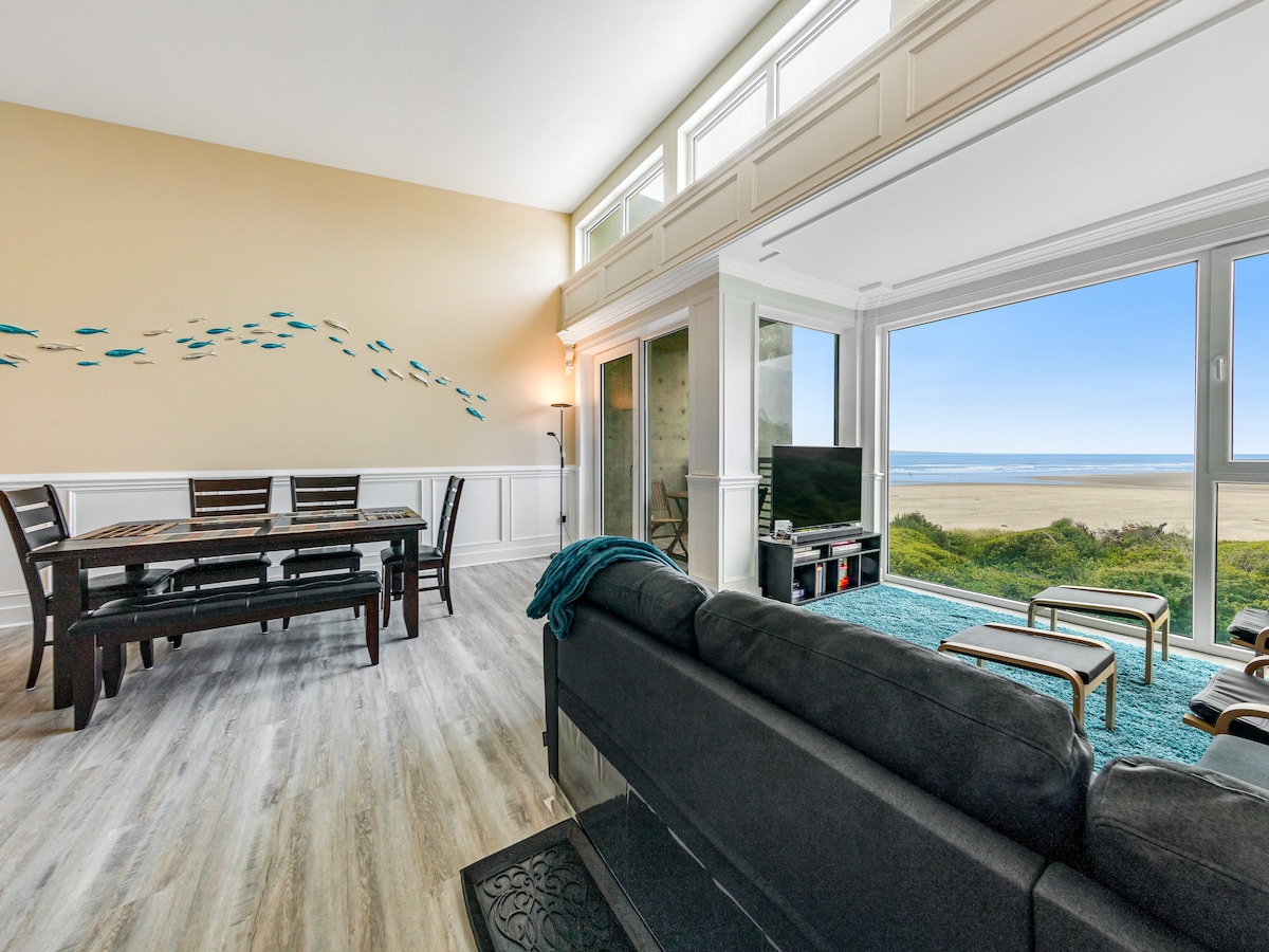 Téigh díreach isteach san árasán iontach 2BR 2Bath cois farraige seo le rochtain dhíreach ar an trá, agus lig don draíocht chósta tú a chlúdach. Is é do gheata é chun éalú ó mheilt laethúil agus glacadh le háilleacht an dúlra agus tú ag fanacht laistigh de rochtain éasca ar nithe is díol spéise agus ar iontais nádúrtha feadh Chósta maorga Oregon. Déan iniúchadh ar bhuaicphointí do thearmainn cois trá 🛏️ 2 Sheomra Leapa Compordacha Spás Maireachtála an Choincheapa🏠 Oscailte Cistin 🍳 Lánfheistithe 🌅 Deic le Radhairc Álainn Teilifíseáin 📺 Chliste le haghaidh Siamsaíochta