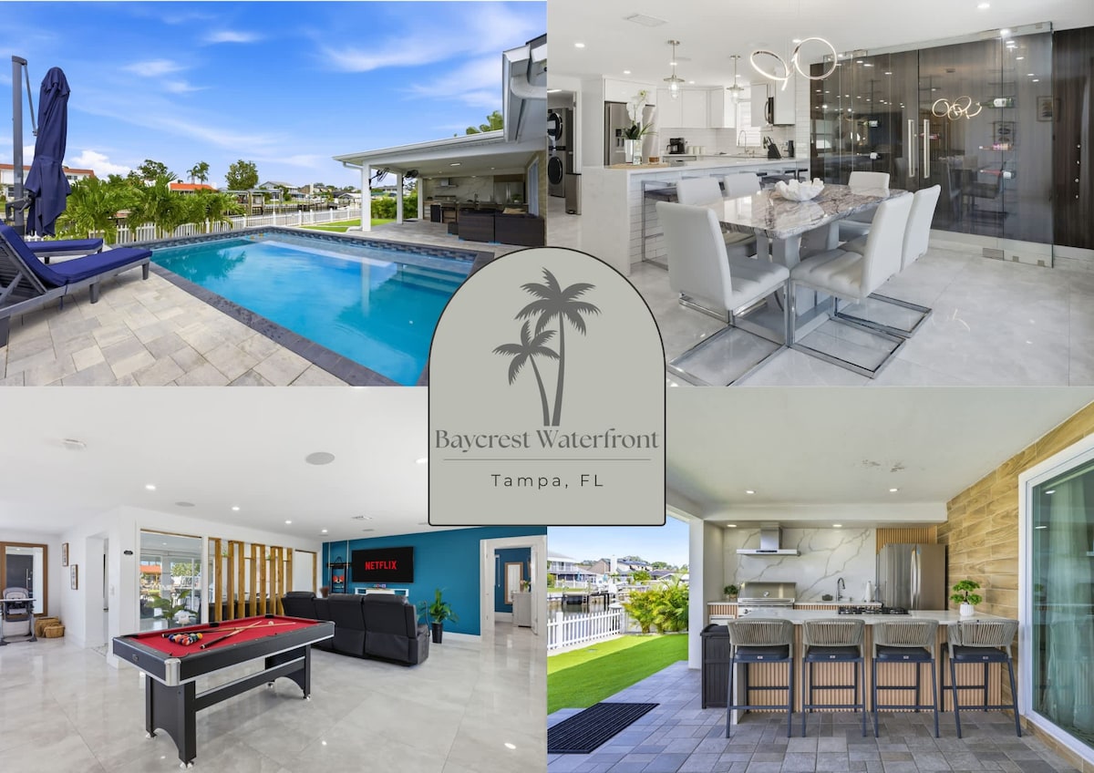 Árasán atá deartha go príobháideach faoi úinéireacht shaincheaptha atá suaimhneach agus síochánta. Lonnaithe san aon ionad saoire uile - uisce sa chathair a fhágann go bhfuil sé seo ar cheann de na rúin is fearr atá i bhfolach ag Tampa! Tá an spás ar cheann de chineál agus tá sé feistithe go hiomlán le gach rud a d'fhéadfadh a bheith uait nó a bheith ag teastáil uait lena n - áirítear cistin gourmet, linn snámha théite, bialann/beár, ciorcad aclaíochta lasmuigh, cúirteanna eitpheile, botháin tiki, firepit scíth a ligean, Wi - Fi ardluais... agus níl ansin ach an tús!