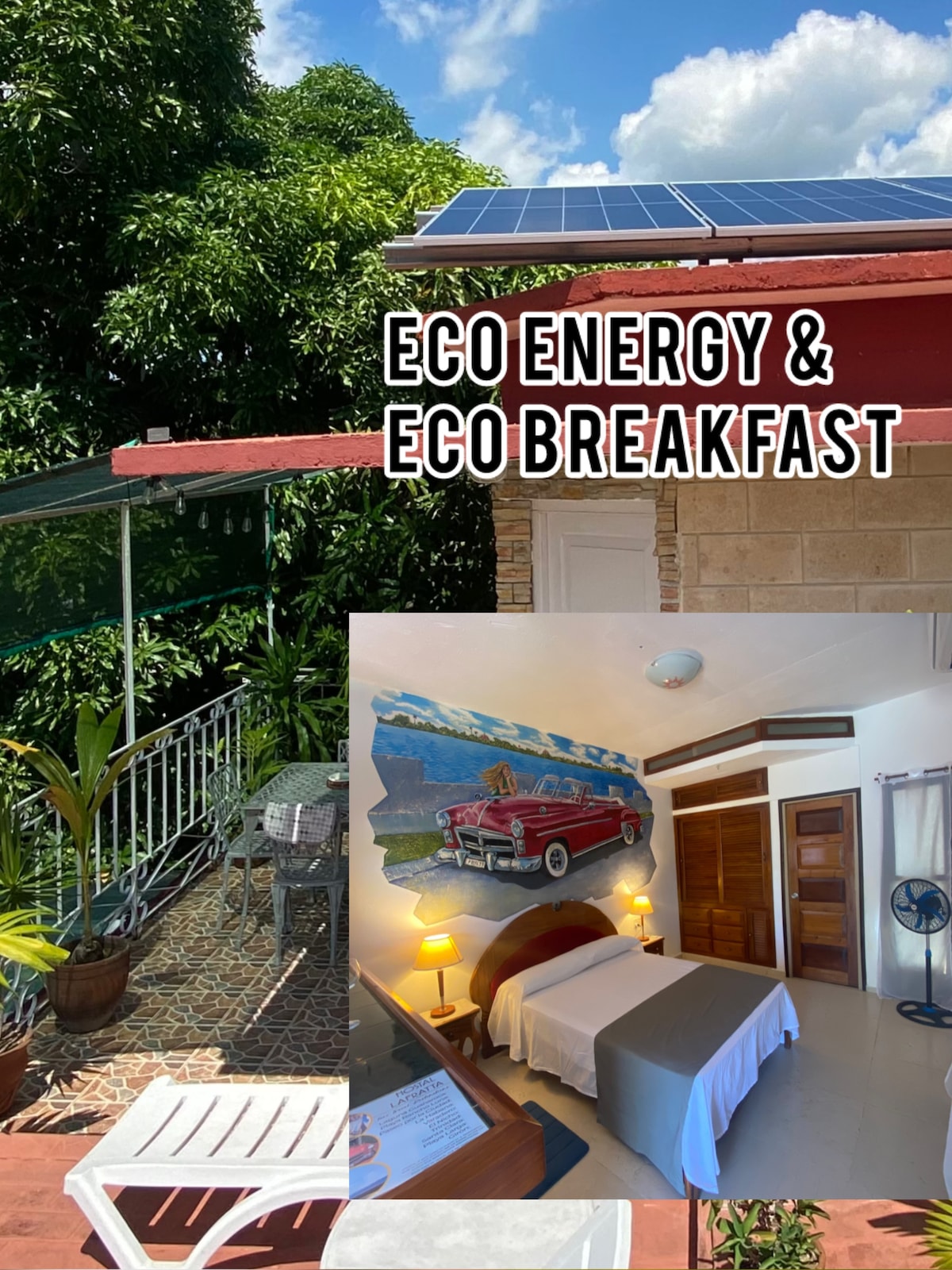 "Eco-Friendly Urban Oasis in Cienfuegos! Sustainable hostel with 100% solar power, located just 200m from the historic center. Enjoy independent access, panoramic terraces, fully equipped kitchen, and snack bar. Modern comfort meets green living – your perfect urban retreat!" The synthesized version: Maintains the key selling points Uses an attention-grabbing headline Highlights location and unique features Keeps it concise and punchy Includes an emoji for visual appeal
