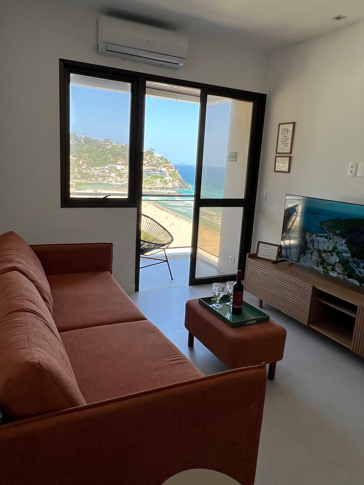 Árasán, seomra leapa agus seomra suí dochreidte, athchóirithe go hiomlán. Ag breathnú amach ar an bhfarraige, i gceann de na háiteanna is fearr ar thrá Barra da Tijuca. In aice le tráchtáil, beáir agus bialanna. Cluthar agus nua - aimseartha. Tá áit san fhoirgneamh ina bhfuil linn snámha, beár, guairneáin agus ionad aclaíochta, chomh maith le seirbhís trá, margadh agus caifitéire.