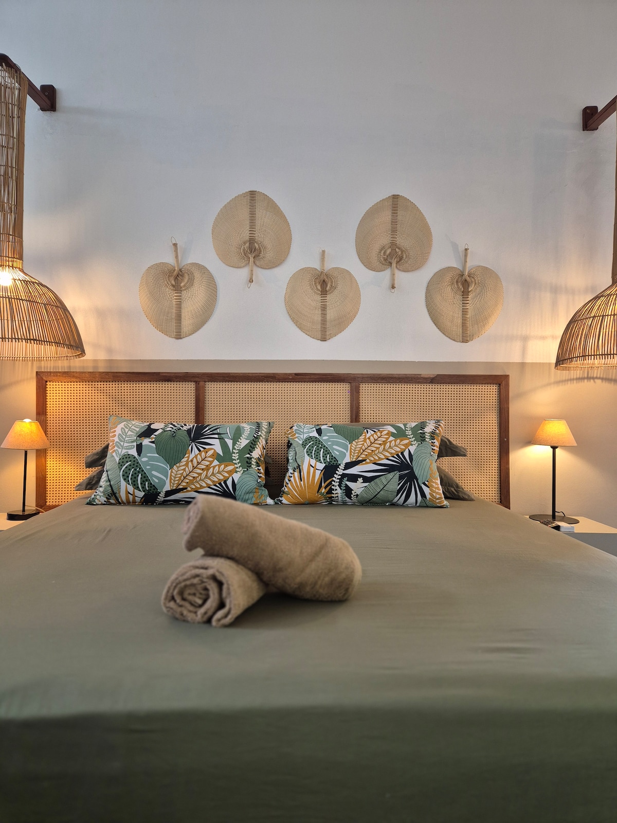 Cuirimid ár dteach pearsanta ar fáil atá suite ar láthair surfála eitleoige Mourouk in Rodrigues, 150m ón trá Tá 2 sheomra leapa sa teach ina bhfuil gaothrán, seomra cithfholcadáin, cistin fheistithe, seomra suí, gairdín príobháideach agus ardán/veranda a thairgeann radharc iontach ar an bhfarraige. Níl ach siúlóid ghearr chuig an trá, ionaid Surfála Eitleoige, stad bus agus bialanna/sneaiceanna áitiúla. Beidh tú buíoch as an atmaisféar , na daoine agus comharsanacht bhríomhar an oileáin.