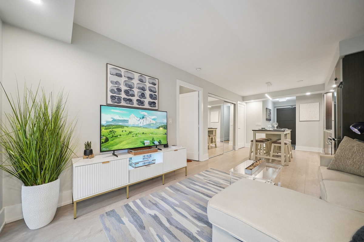 Ráthaítear árasán nua - chóirithe atá suite i gcroílár Downtown Toronto chun d'fhanacht a uasmhéadú le gach rud gar. Tá an condo 10 troigh uasteorainneacha agus os cionn 700 troigh cearnach Soláthraímid Wi - Fi ardluais, Teilifís Cábla, meaisín níocháin/triomadóir, agus saoráidí bunúsacha. Déan iniúchadh ar Toronto díreach ar leac an dorais agat: - Ionad Comhdhála Metro Toronto 30m - Túr CN/Ionad Rogers 210m Union Station - 500m - Ionad Cois Cuain 700m - Air Canada Centre 900m - TIFF Bell Lightbox