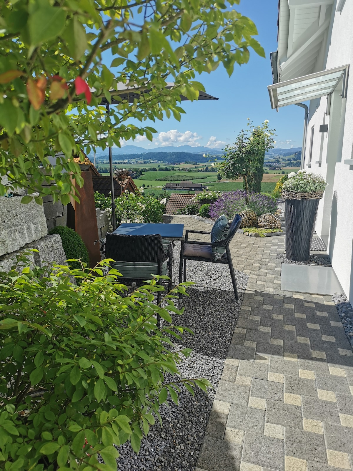 Tá an t - árasán beag dea - choimeádta le radharc gairdín suite sa chuid chúil de theach an úinéara. Níl rochtain ar an mbealach isteach ar leith ach trí roinnt céimeanna. Ón áit suí lasmuigh os comhair an árasáin, is féidir leat radharc iontach a fháil ar an tuath/Pilatus. Tá spás páirceála amháin ar fáil os comhair an tí. Tá go leor conairí iontacha fánaíochta agus rothaíochta sa dúlra ag fanacht leat . Is féidir leat teagmháil a dhéanamh ar an traein freisin le naisc mhaithe..... Lucerne, Entlebuch,Berne,Zurich,Basel agus go leor eile.