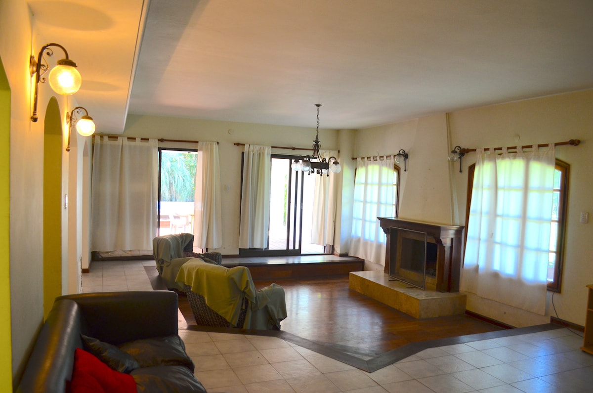 Teach teaghlaigh galánta 3 sheomra leapa atá deartha don scíth agus don stíl. Tá sé faoi throscán agus maisithe go hálainn, agus níl sé ach 25 nóiméad ó Rosario agus gar don aerfort, do chúrsaí gailf agus do shiopaí. Bain sult as an ngairdín mór ina bhfuil crainn phailme, linn snámha phríobháideach, agus áit BBQ. Seirbhís ghlantacháin tar éis gach fanachta. Fáilte roimh pheataí le táille.