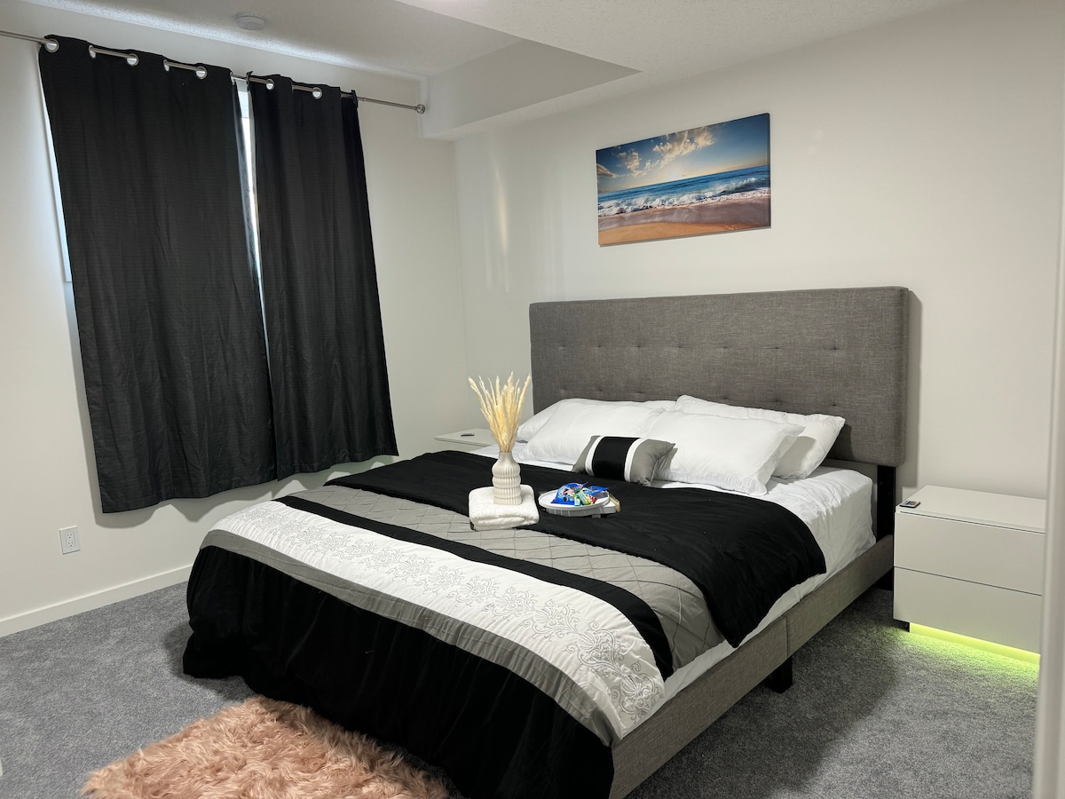 Svuít nua d'aíonna atá suite in Arbours in Keswick, comharsanacht in SW Edmonton, Alberta a bunaíodh in 2018. Tá fearais nua, cistin, meaisín níocháin agus triomadóir, cuisneoir, raon, micreathonnán, miasniteoir, citeal, potaí, uirlisí cócaireachta, sceanra agus miasa feistithe sa seomra suite. Teirmeastat féin - rialaithe le haghaidh rialú teochta. Bealach isteach príobháideach le glas cliste. Caife & tae comhlántach ar fáil. Netflix & Amazon Prime Ar fáil. Wi - Fi ar fáil. Páirceáil sráide ar fáil.