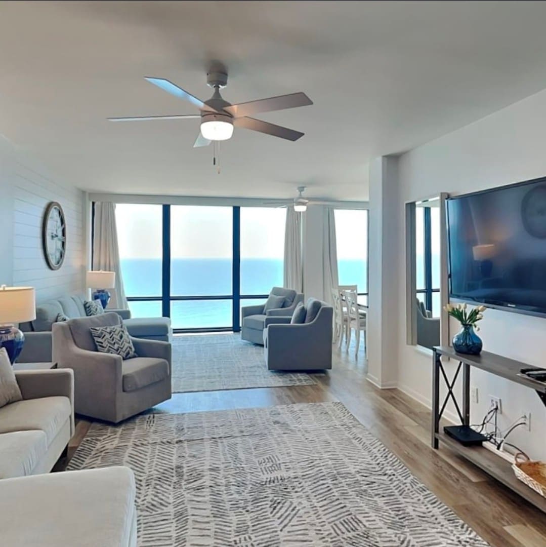 Is é an Oasis 710 an t - éalú cois trá is fearr atá agat! Tugann an t - árasán 3 sheomra leapa 4 leaba seo an cósta go léir fionnuar, le dhá sheomra rí, an tríú seomra leapa le dhá leaba bhanríona, agus spás maireachtála oscailte bríomhar. Taispeánann fuinneoga ó urlár go síleáil radhairc eipiciúla na Murascaille, agus coinníonn an bhalcóin fhairsing, an chistin lánstóráilte, agus an beár fliuch le déantóir oighir na dea - shnáithíní ag imeacht. Le rochtain dhíreach ar an trá agus saoráidí i stíl an ionaid saoire, is é seo an áit fhoirfe chun tús a chur siar, do scíth a ligean agus an ghrian a mhúscailt!